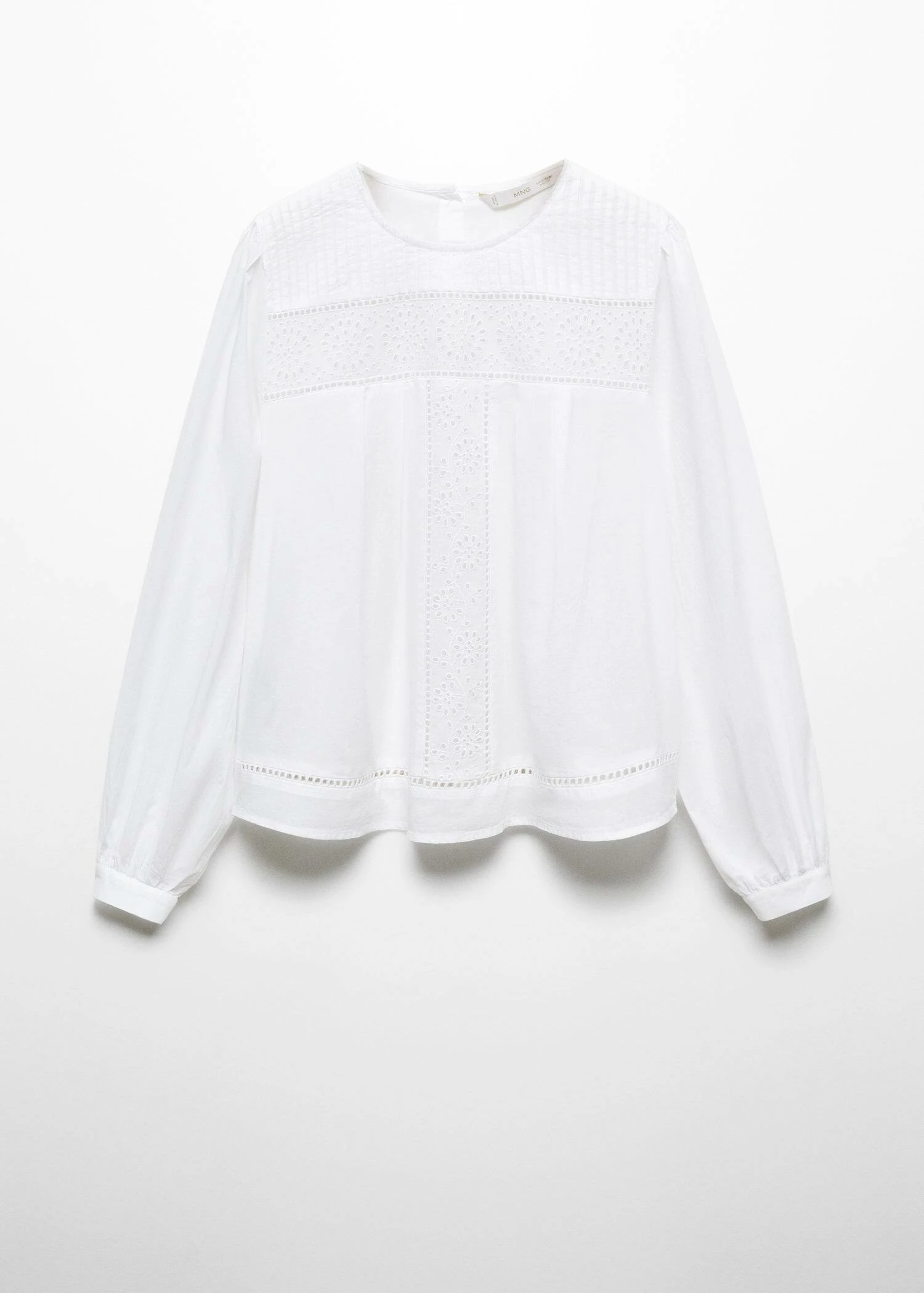 100 % coton, style oversize, col rond, manches longues avec poignets boutonnes, bouton de fermeture a l’arriere, details ajouresComposition: 100% coton. Broderie: 100% polyester