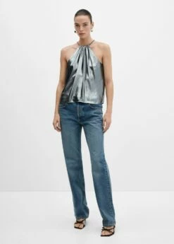 tissu fluide, coupe droite, effet satine, col rond, manches longues, fermoir a chainette et mousqueton, encolure au dos, epaulettes, collection fetes et ceremoniesComposition: 100% polyester