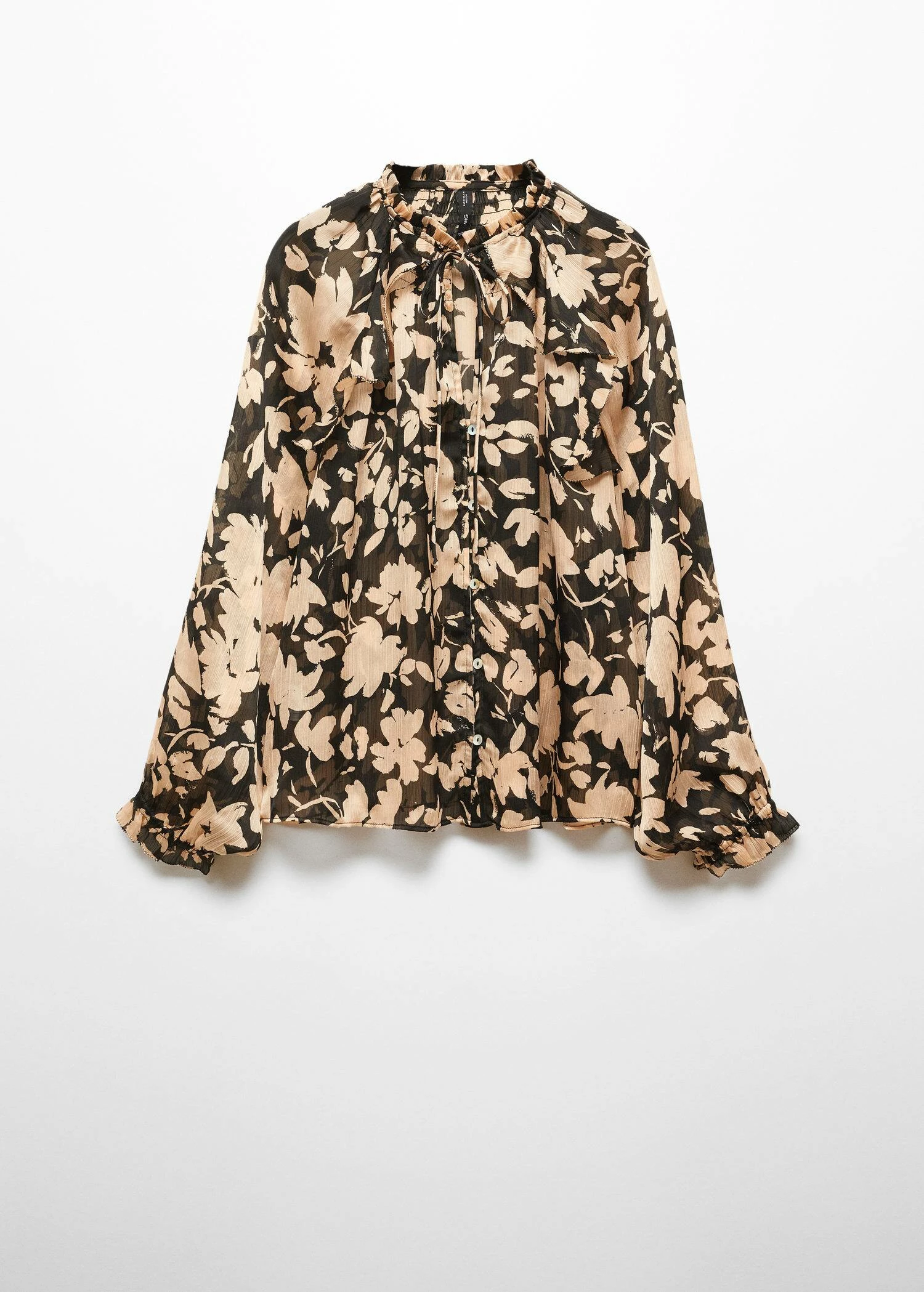 tissu fluide, coupe longue, imprime fleurs, col en v, manches longues, manches bouffantes a poignets elastiques, lien a nouer autour du cou, fermeture boutonnee sur le devant, volants lateraux decoratifs, sans doublure interieure, disponible plusComposition: 100% polyester
