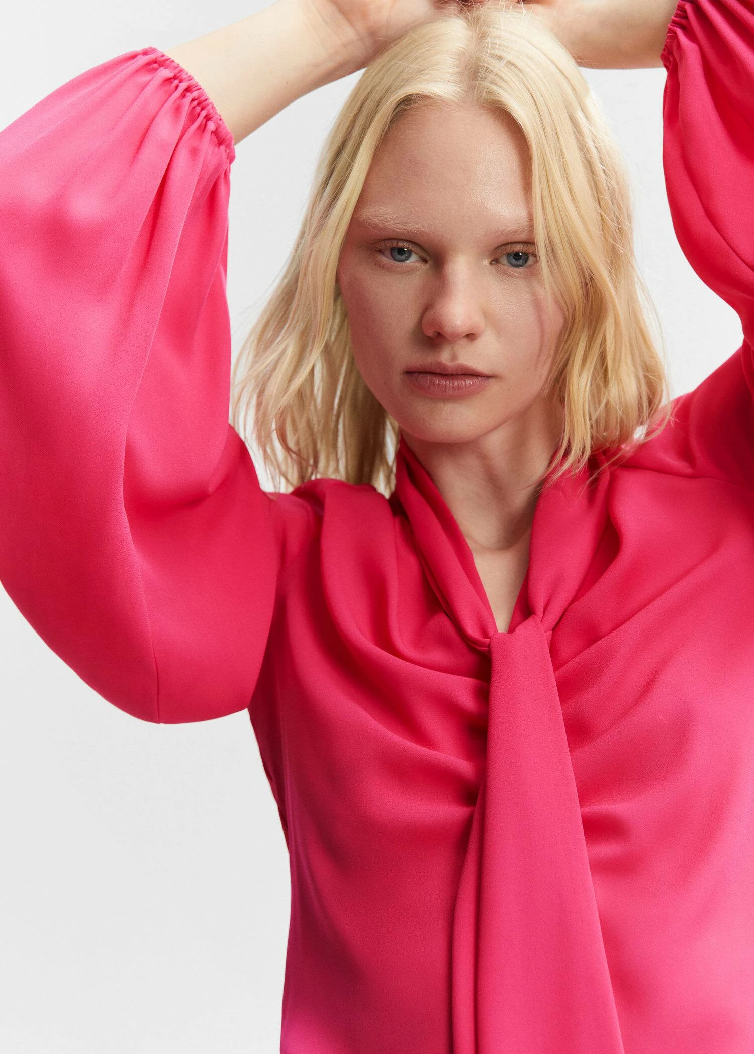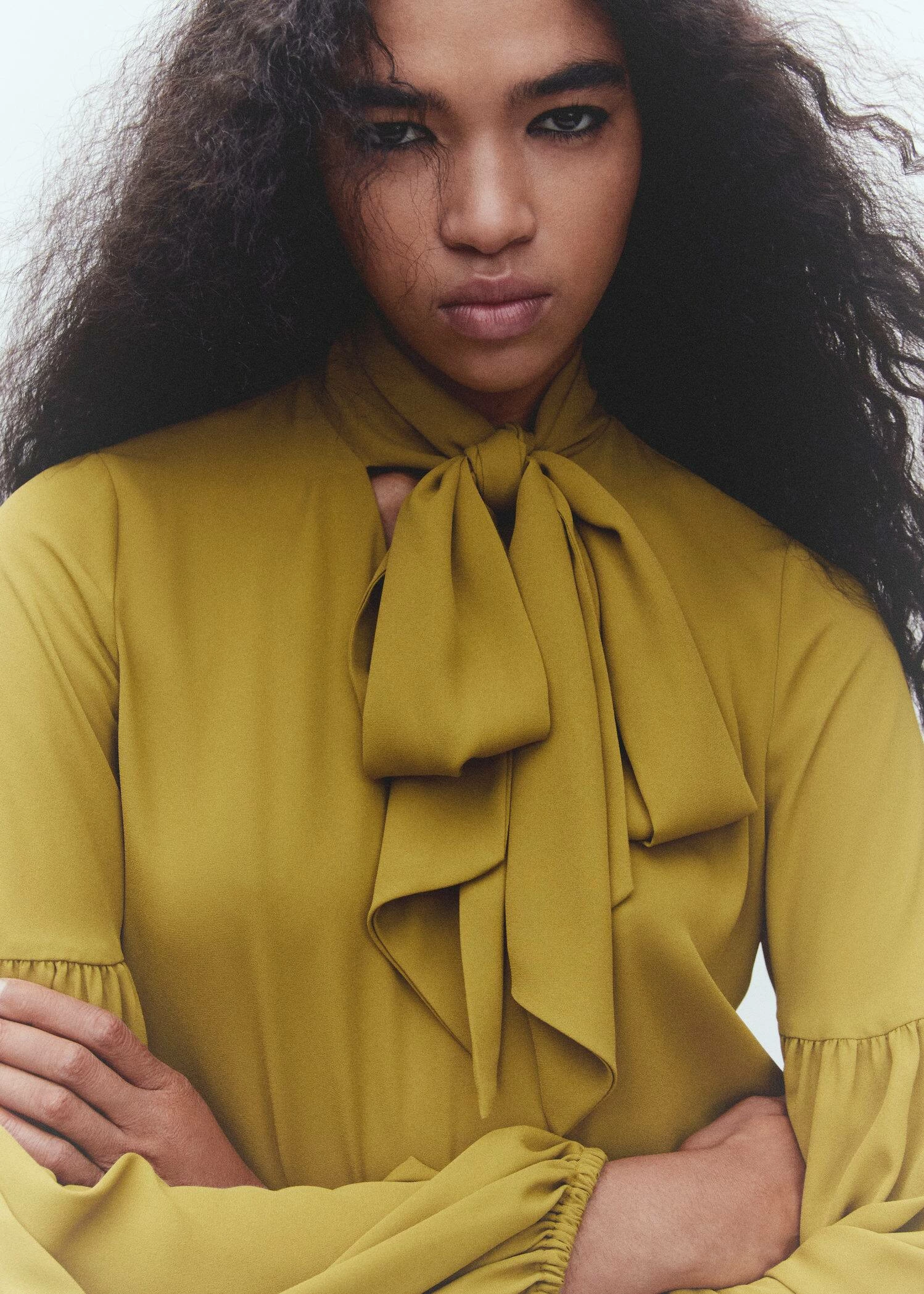 coupe droite, coupe longue, lien a nouer autour du cou, manches longues bouffantes, poignets elastiques, sans fermeture, total lookComposition: 60% polyester,40% polyester recyclé