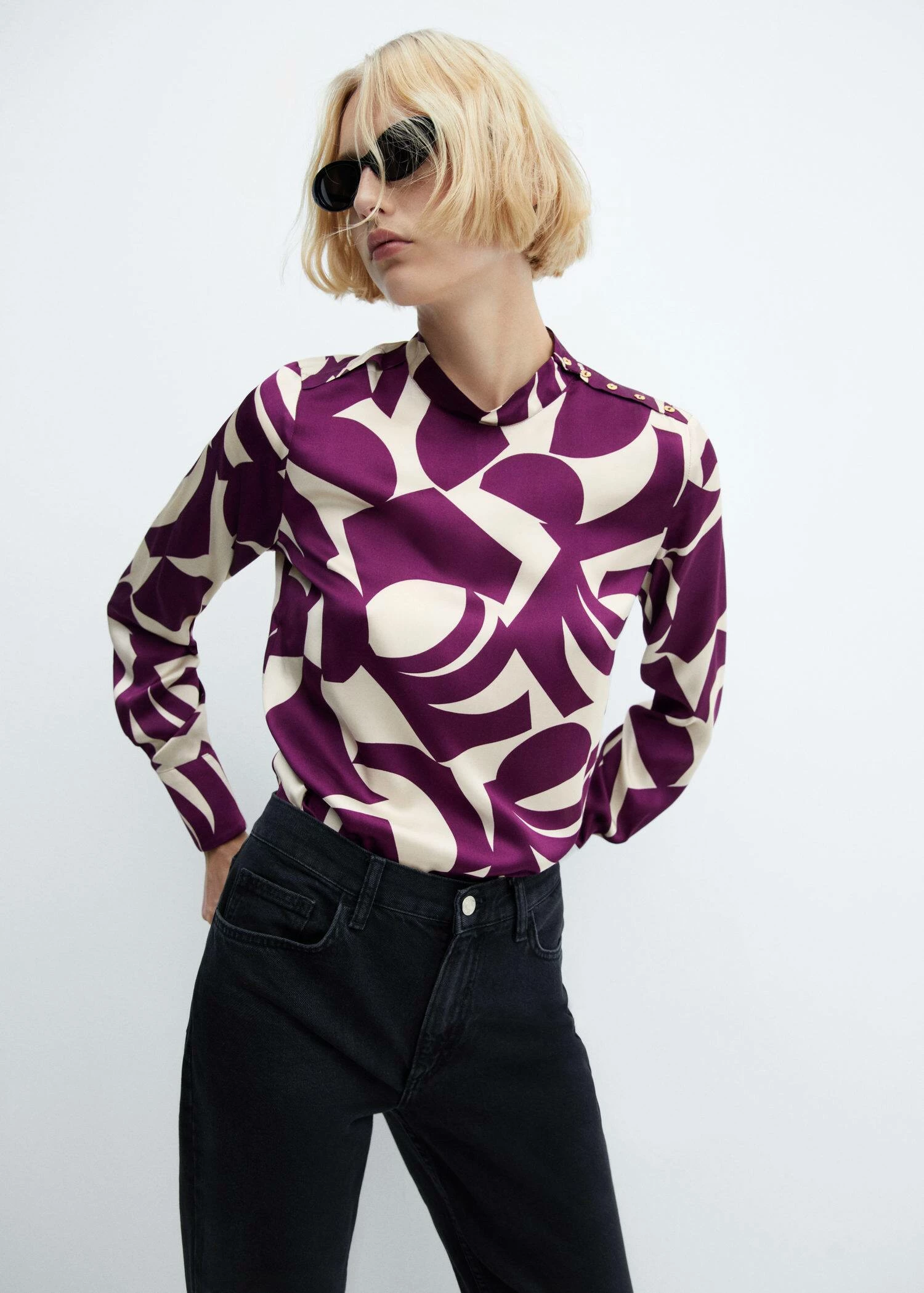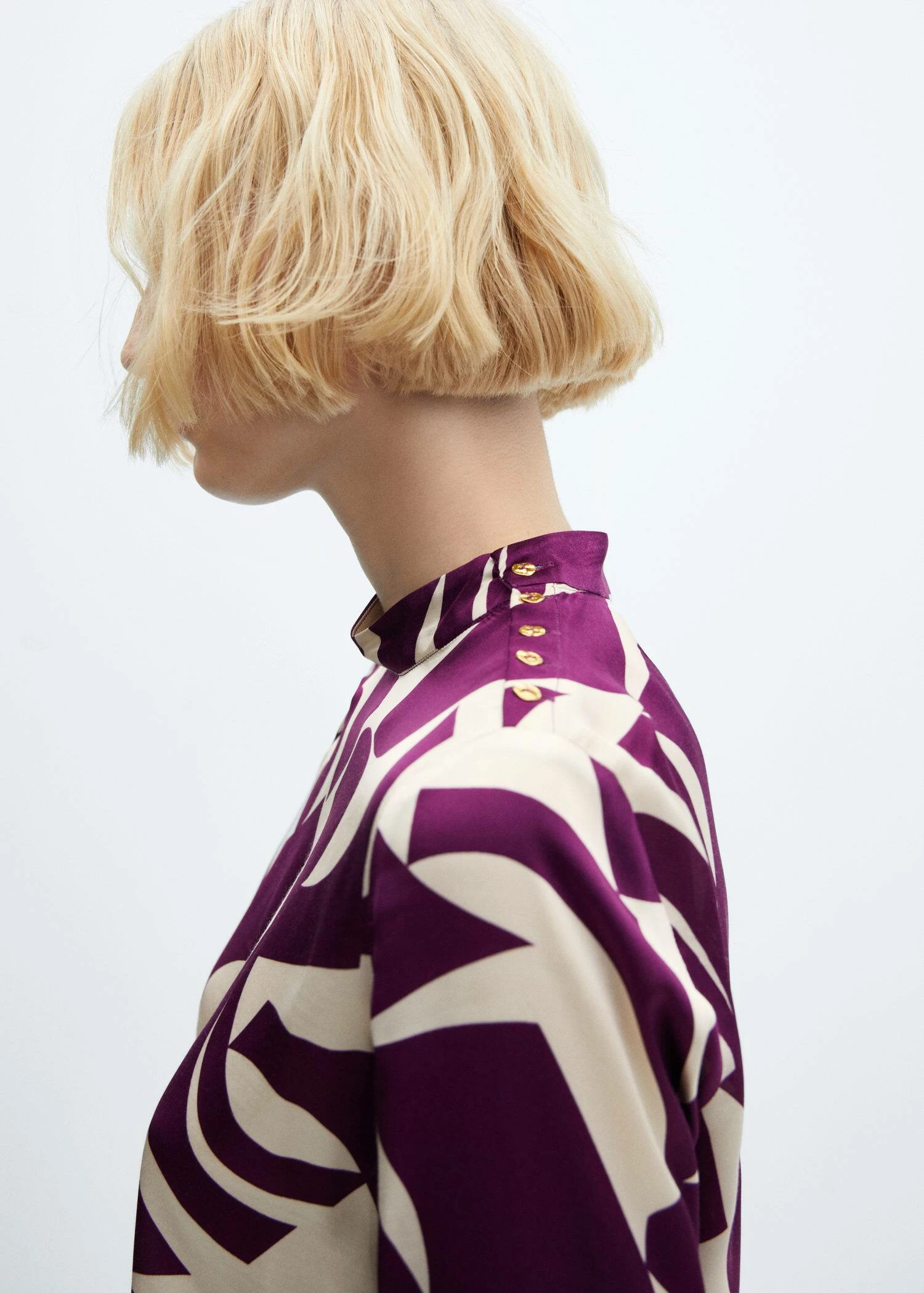 tissu satine, tissu fluide, droit, imprime, col officier, manches longues boutonnees, fermeture boutonnee sur l’epaule, disponible plusComposition: 100% viscose