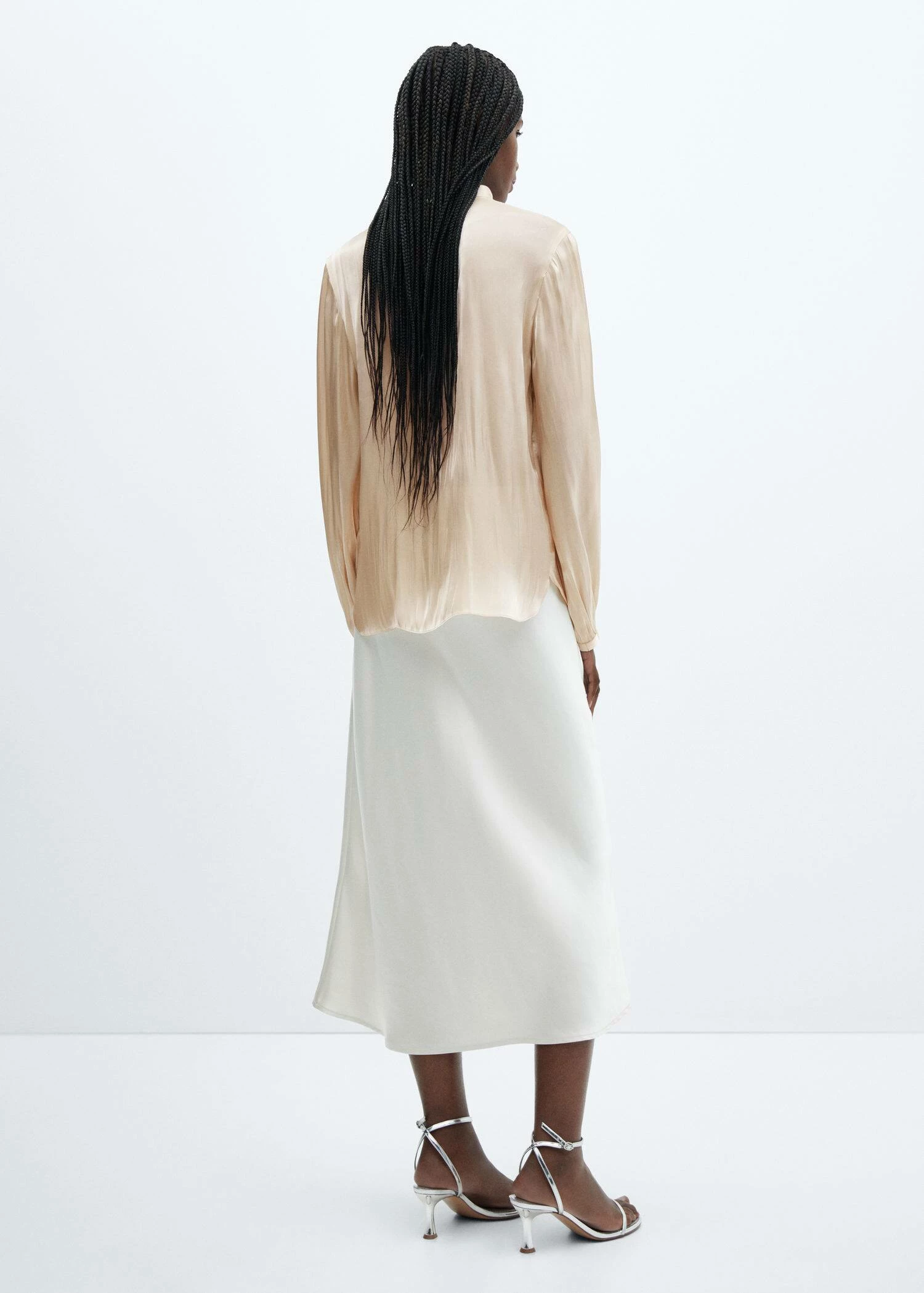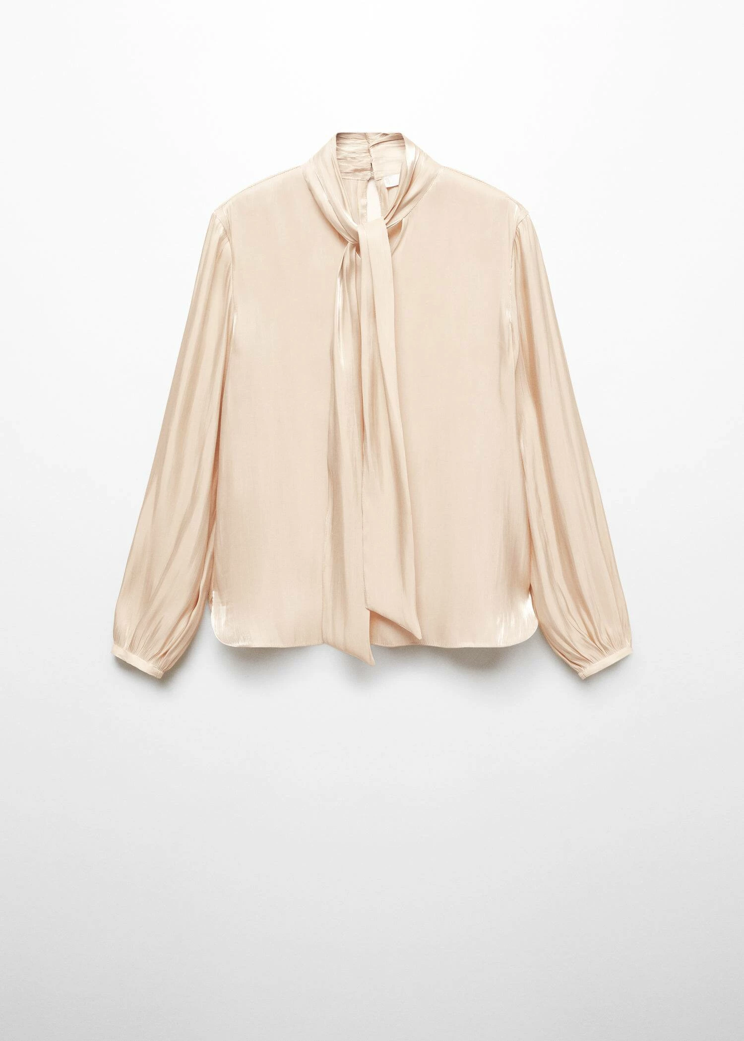 tissu fluide, coupe droite, effet satine, manches longues, lien a nouer autour du cou, fermeture crochet a l’arriereComposition: 100% polyester
