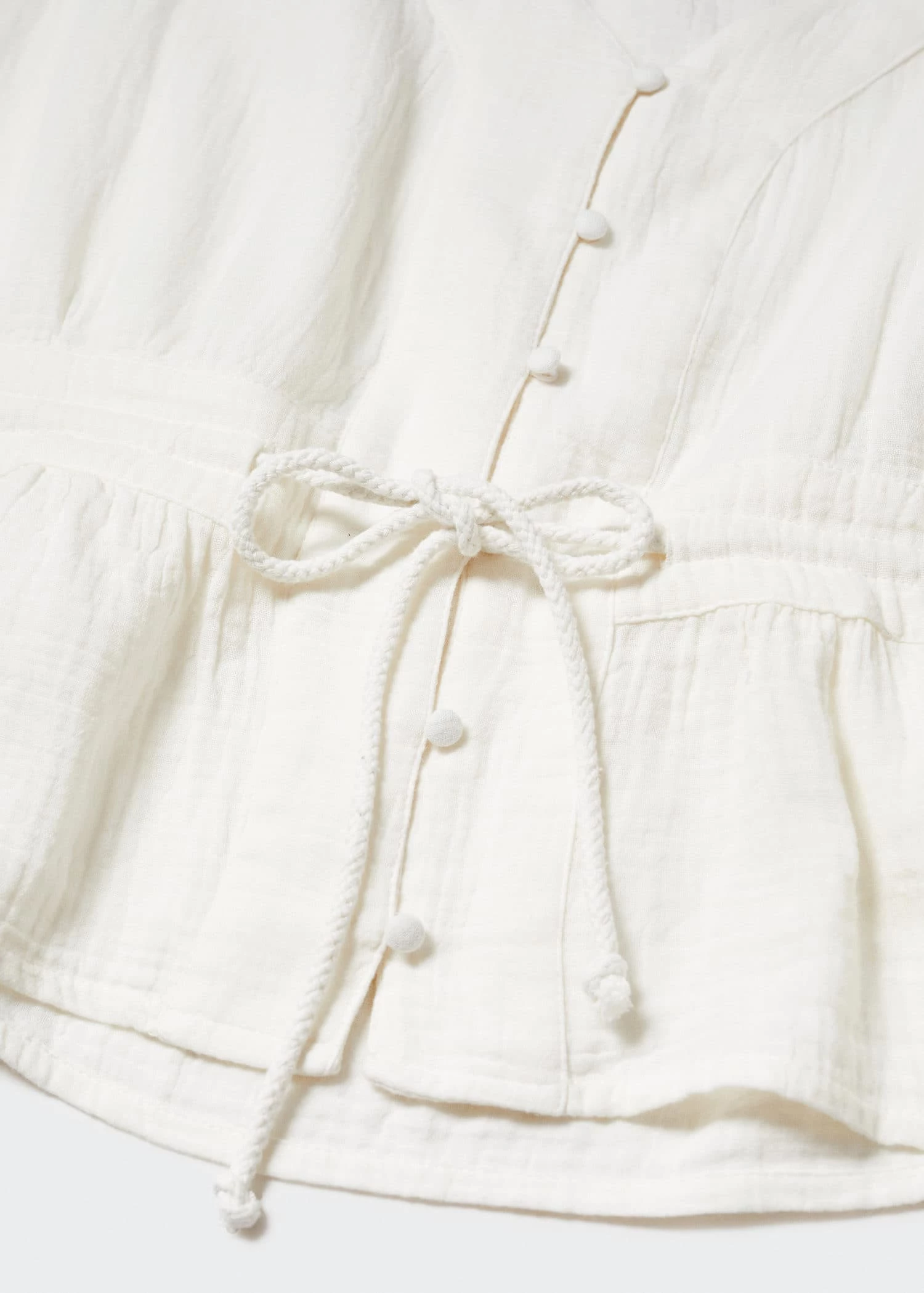 mini me, tissu 100 % coton, tissu texture, coupe droite, col en v, manches courtes, fermeture boutonnee sur le devant, ceinture a nouer a la taille, total look, ce vetement est egalement disponible dans la collection kids girl. Composition: 100% coton