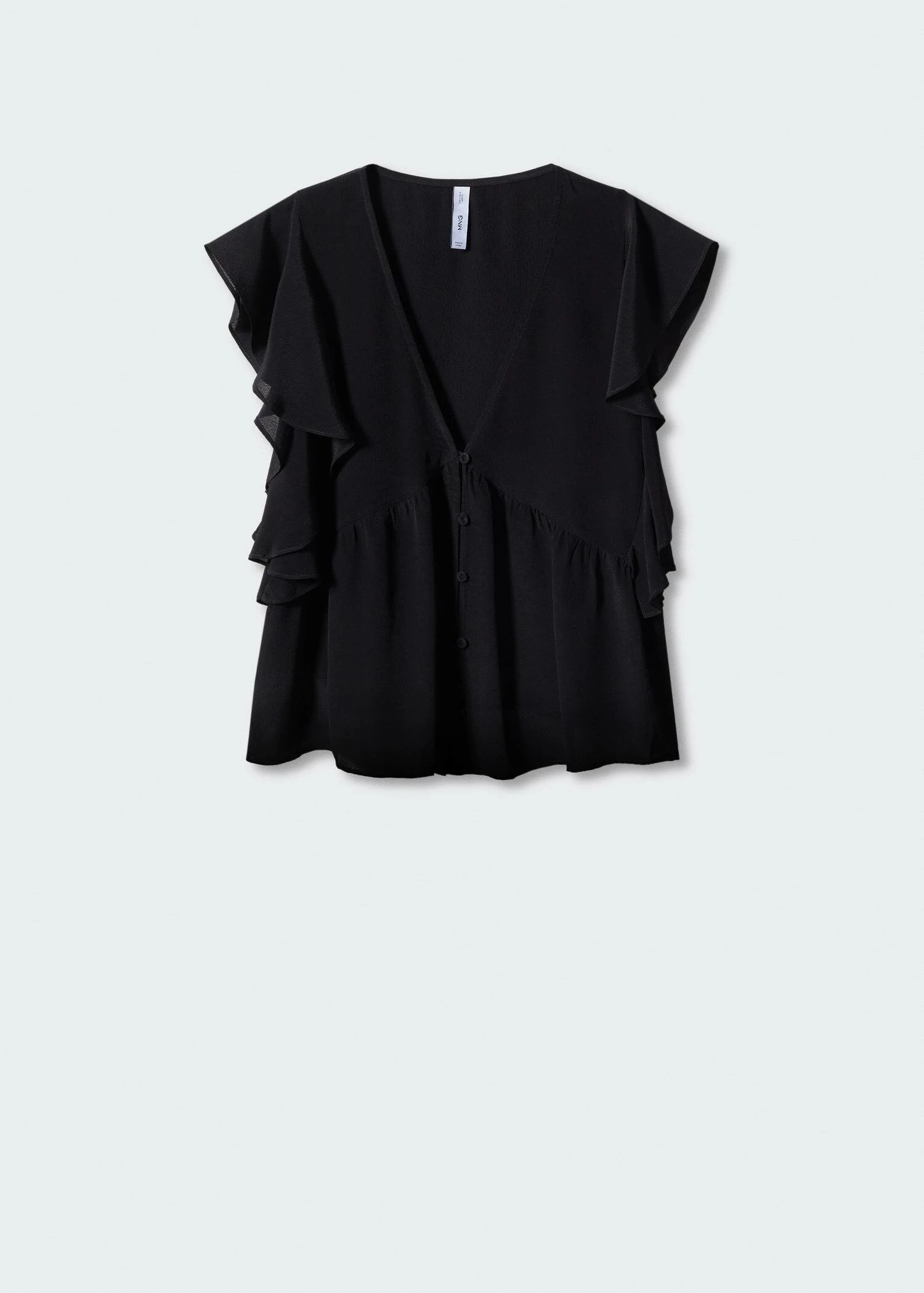 tissu fluide, coupe droite, col en v, sans manches, fermeture boutonnee sur le devant, details volantes, disponible plusComposition: 100% viscose