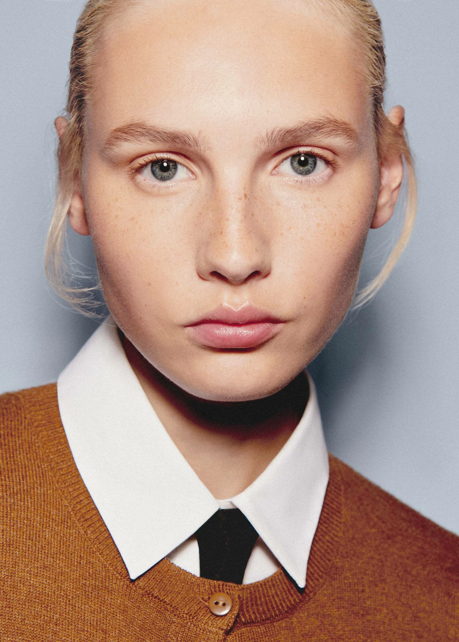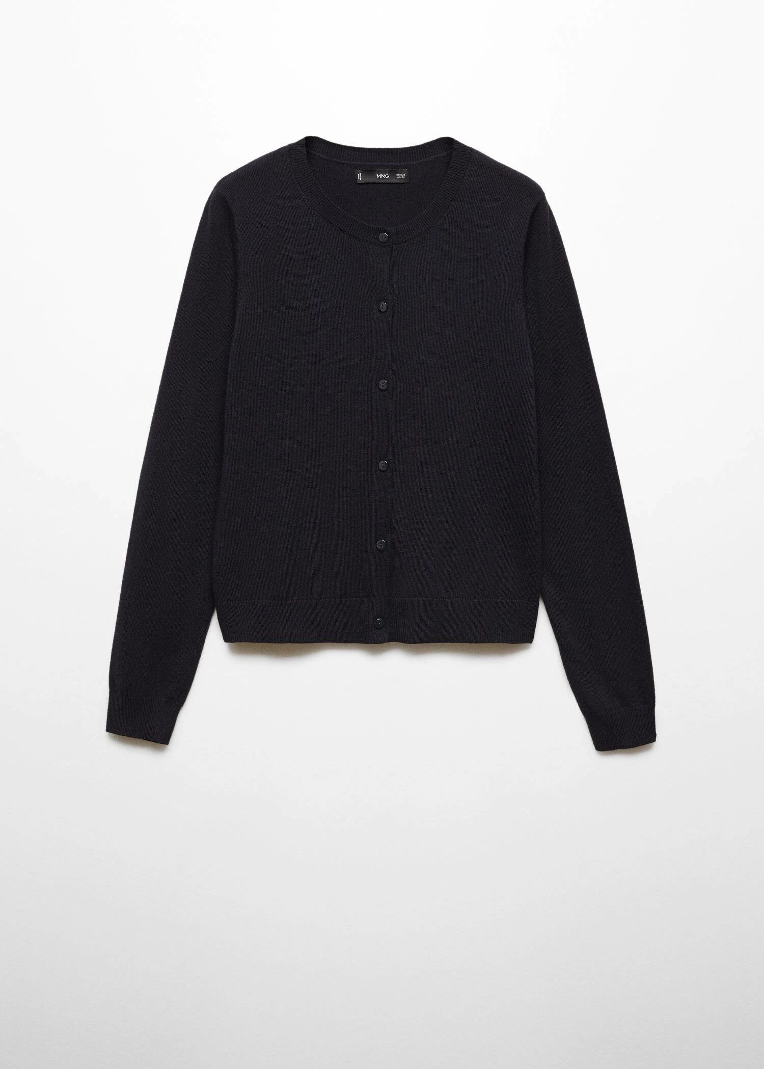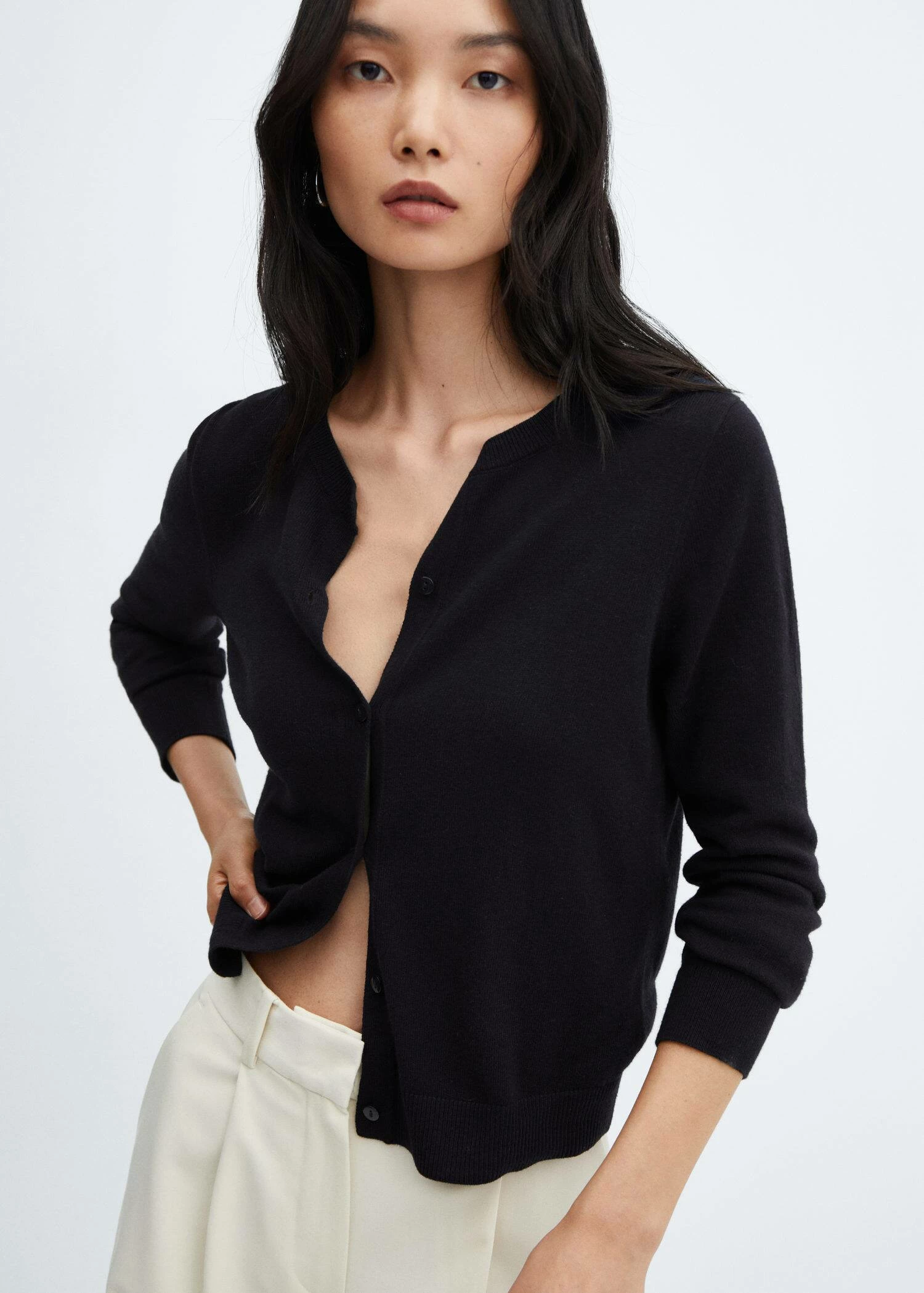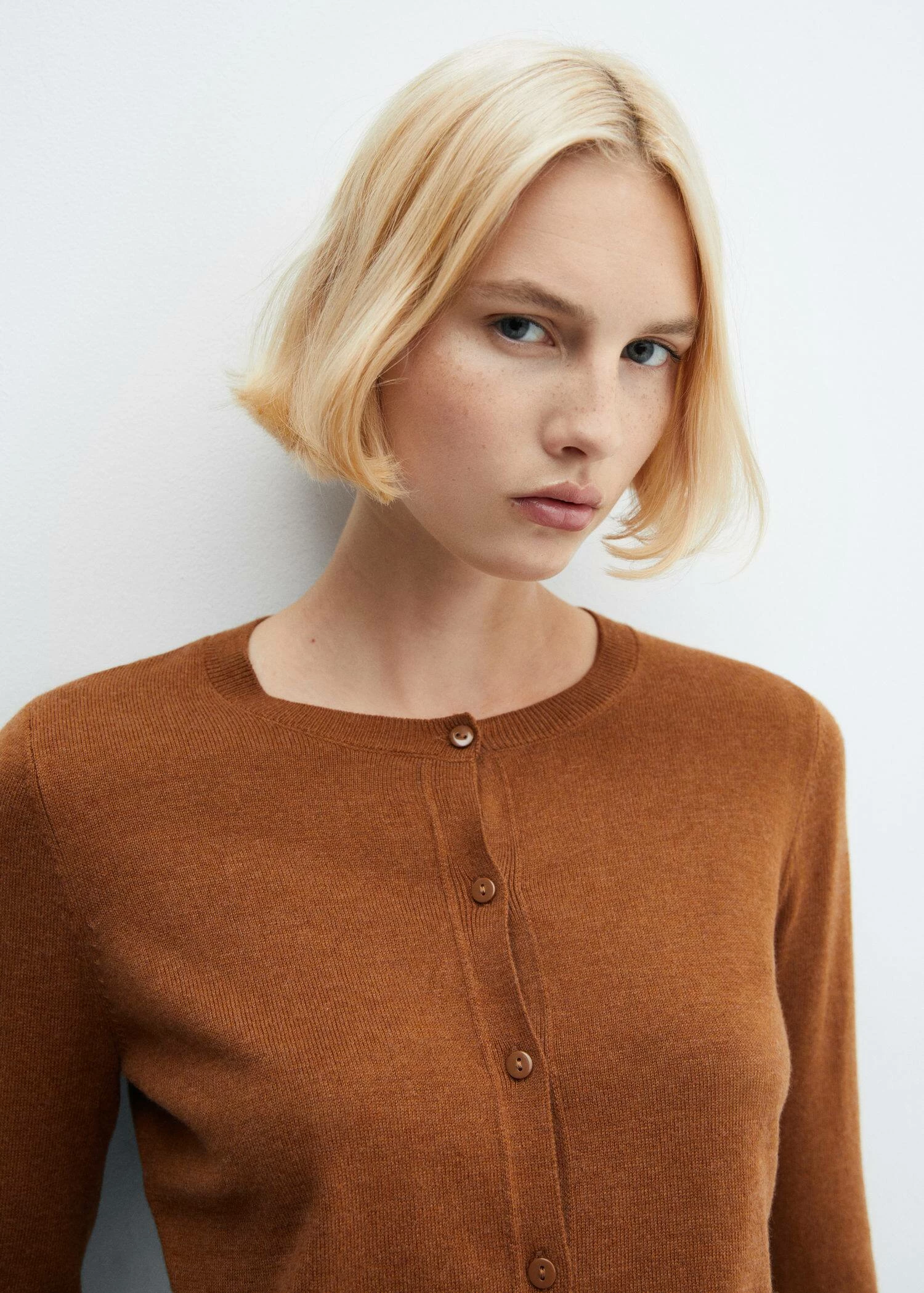 tissu en coton organique recycle melange, tissu de laine melange, tissu en maille fine, coupe courte, droit, col rond, manches longues, fermeture a boutons sur le devant, bords coteles au niveau du col, des manches et sur le bas, total lookComposition: 47% coton,25% polyamide,22% viscose,6% laine