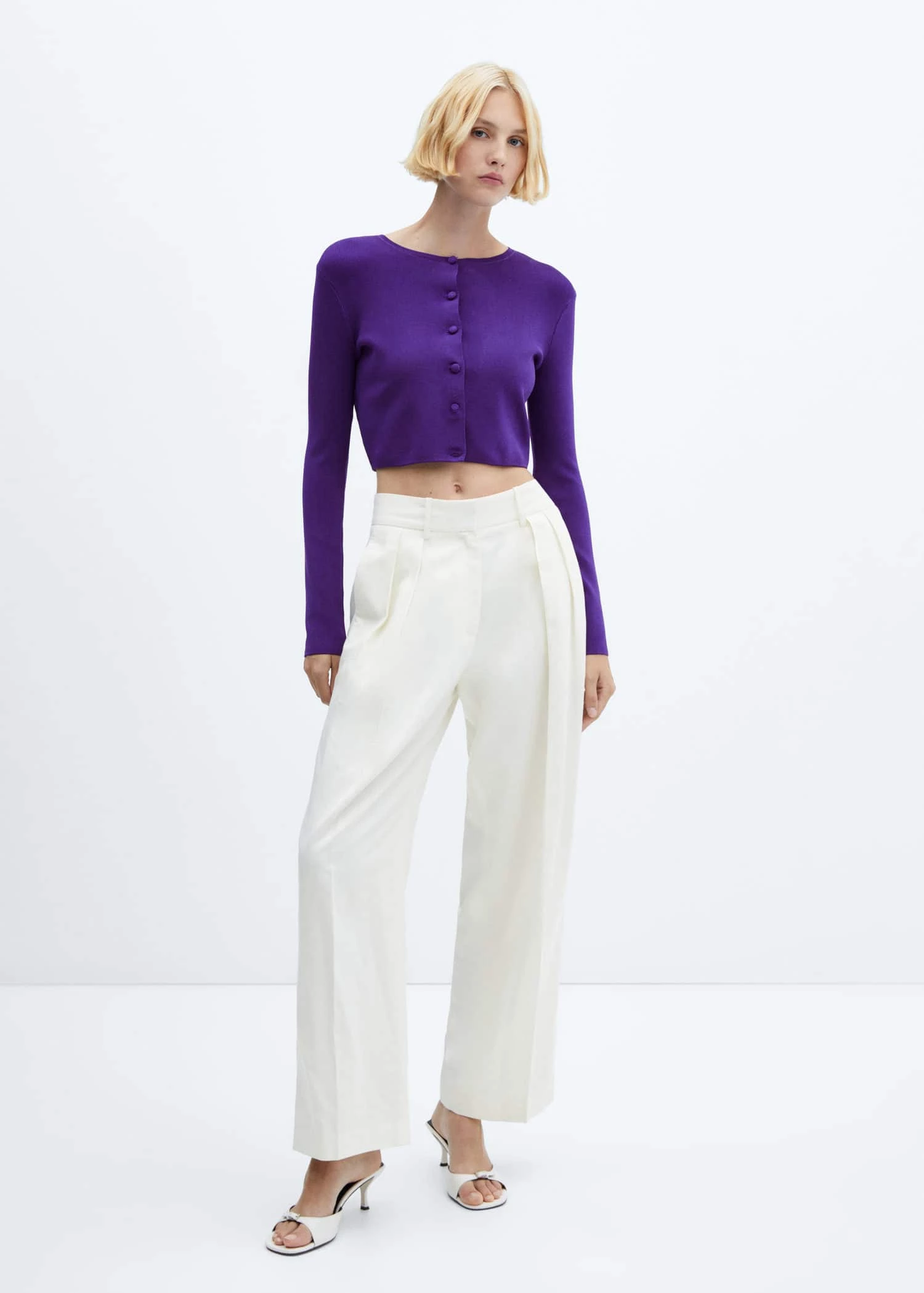 tissu en maille fine, style crop, col rond, manches longues, fermeture a boutons sur le devant, total lookComposition: 78% viscose,20% polyamide,2% elasthanne