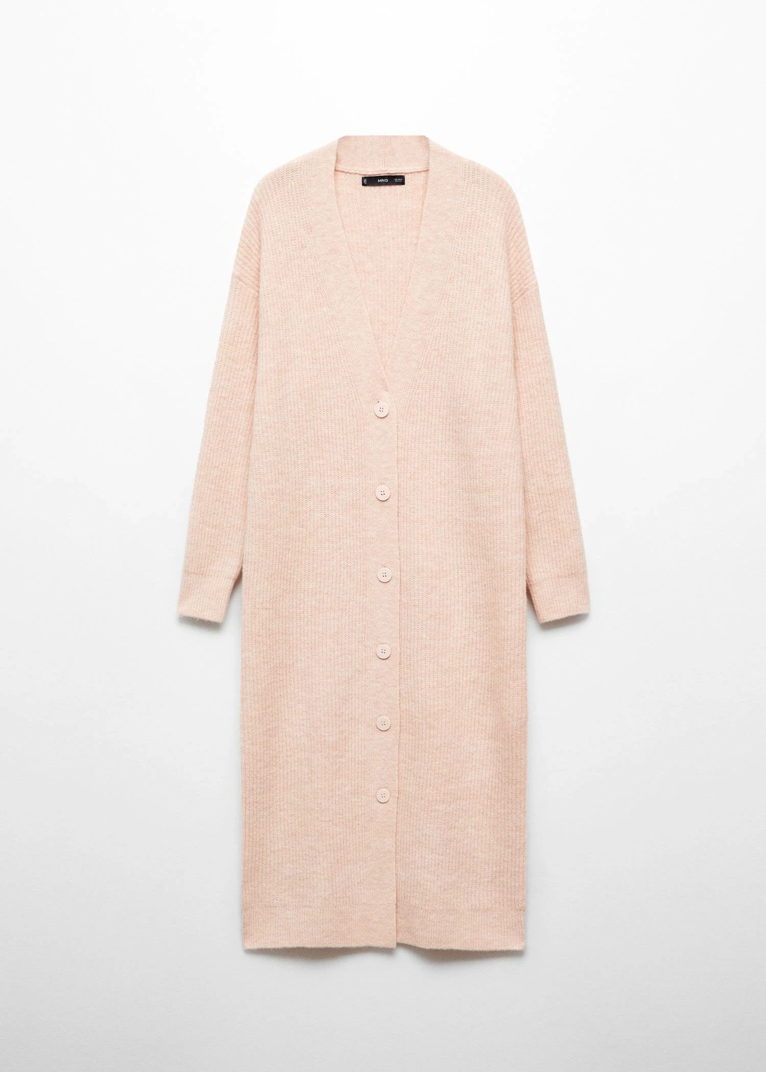 tissu de laine melange, maille moyenne, coupe longue, coupe droite, cotele, col en v, manches longues, fermeture a boutons sur le devant, disponible plus, total look.Composition: 76% polyester,17% acrylique,5% laine,2% elasthanne
