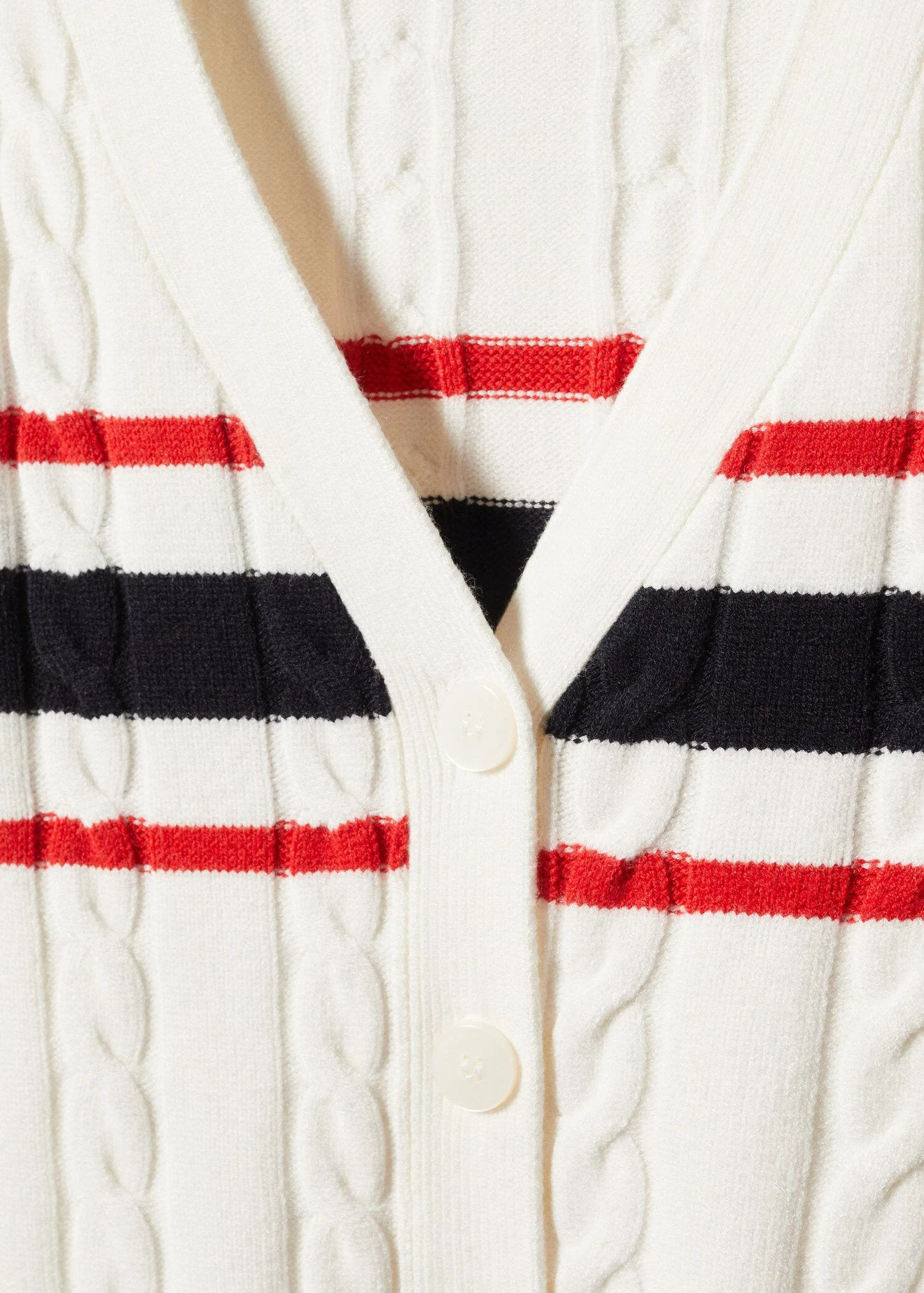 tissu en grosse maille, tissu maille torsadee, droit, motif raye, col en v, manches longues, fermeture boutonnee sur le devant, total lookComposition: 50% viscose,28% polyester,22% polyamide