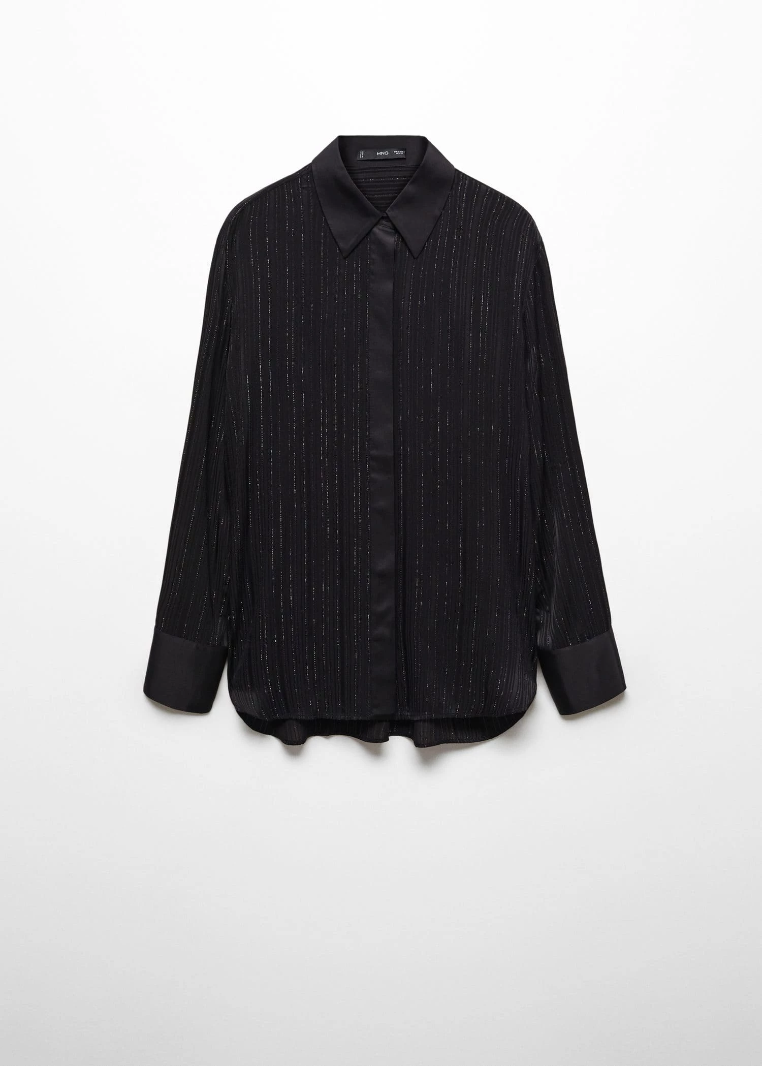 tissu fluide, coupe longue, coupe droite, col chemise, manches longues avec poignets boutonnes, fermeture a boutons dissimulee sur le devant, detail de fil metallise, bords satines, disponible plus, collection fetes et ceremonies.Composition: 99% viscose,1% polyester avec revêtement de cuivre. Applique: 100% viscose