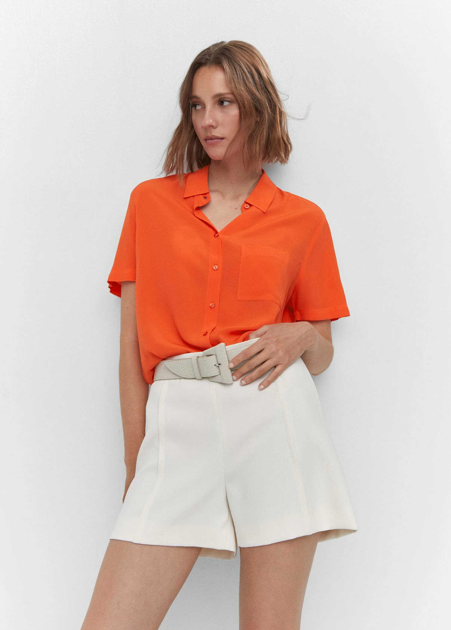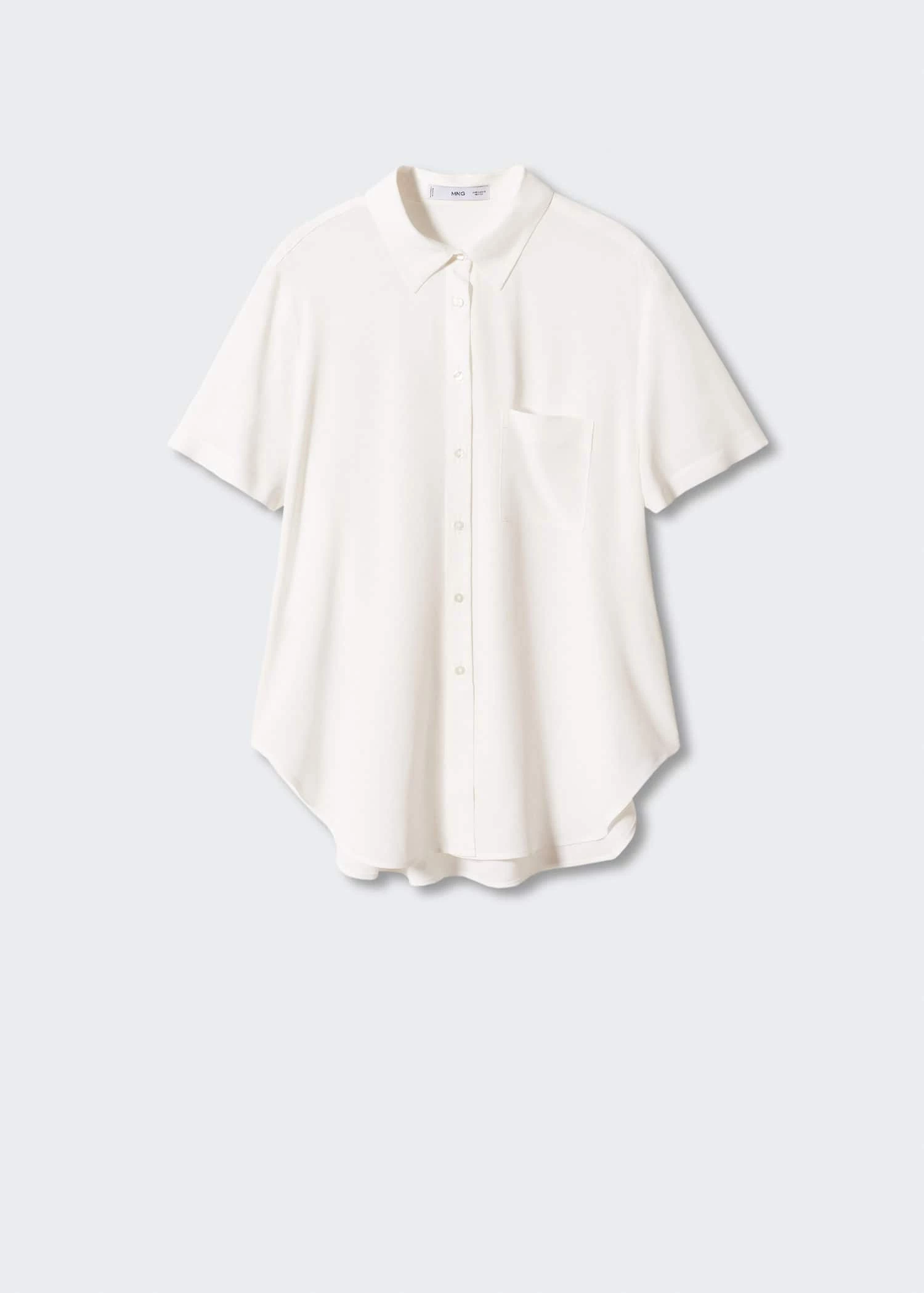 tissu fluide, style oversize, coupe longue, col chemise, manches courtes, poche plaquee sur le devant, fermeture boutonnee sur le devantComposition: 100% viscose