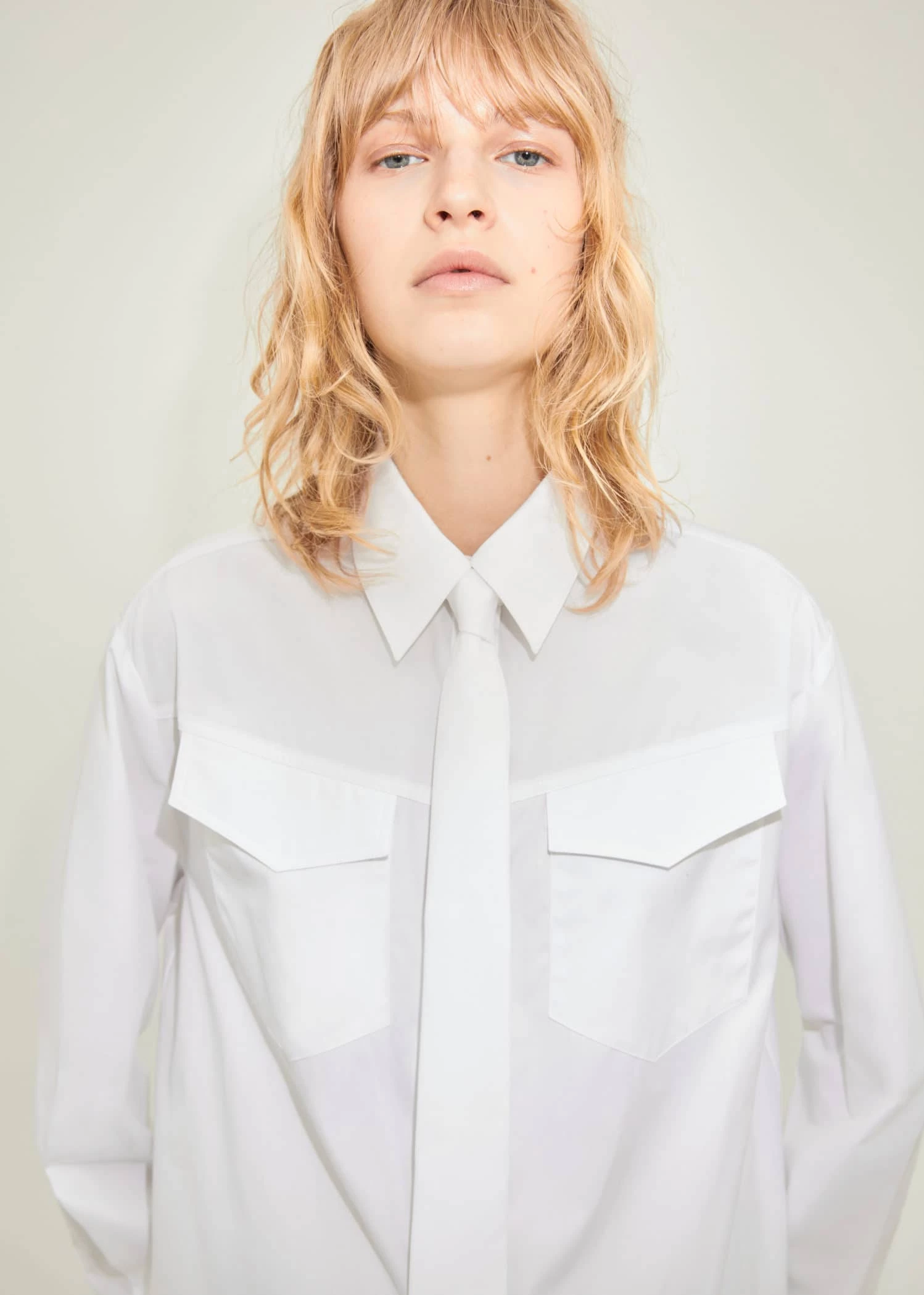 collection selection, 100 % coton, droit, col chemise, manches longues avec poignets boutonnes, deux poches a rabat sur la poitrine, fermeture a boutons dissimulee sur le devant, detail cravate, looks de bureau, une selection de pieces qui vous accompagneront lors du retour au bureau. confectionnee avec des matieres de qualite pour creer une garde-robe feminine et contemporaine pour votre quotidien.