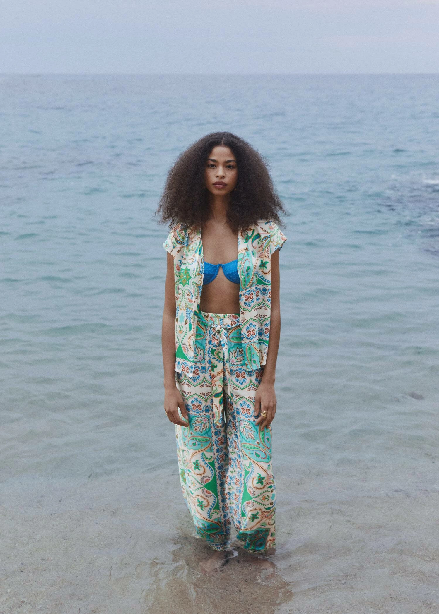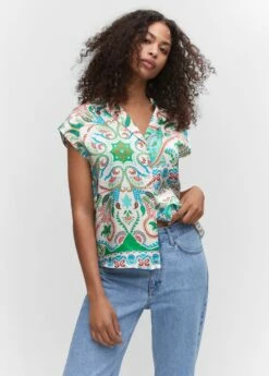 tissu satine, tissu fluide, coupe droite, imprime paisley, col chemise, manches courtes, fermeture boutonnee sur le devant, total lookComposition: 100% polyester