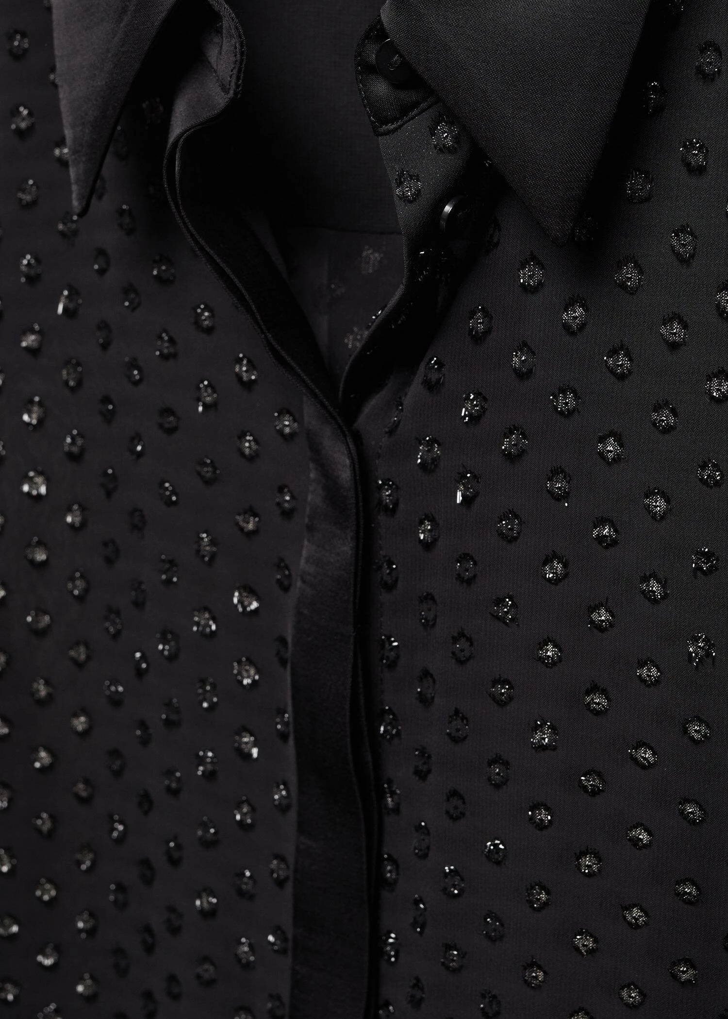 tissu leger, tissu en fil metallise melange, coupe droite, modele semi-transparent, imprime a pois, col chemise, manches longues avec poignets boutonnes, fermeture a boutons dissimulee sur le devant, details en lurex, doublure, disponible plusComposition: 100% polyester. Doublure: 100% polyester. Col: 100% viscose. Revers: 100% viscose. Couvercle: 100% viscose