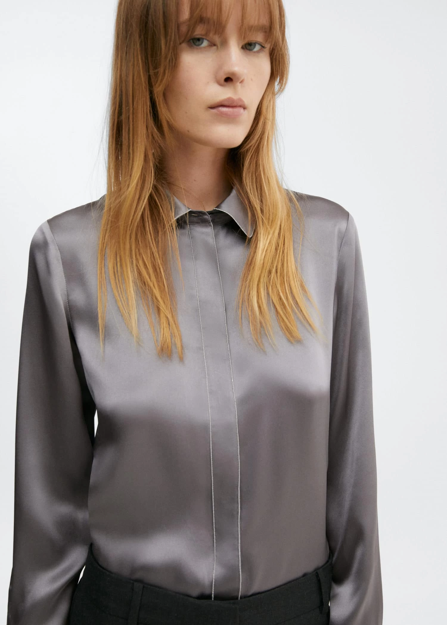 collection selection, 100 % soie, droit, effet satine, col chemise, manches longues avec poignets boutonnes, fermeture boutonnee dissimulee, details de lisereComposition: 100% soie