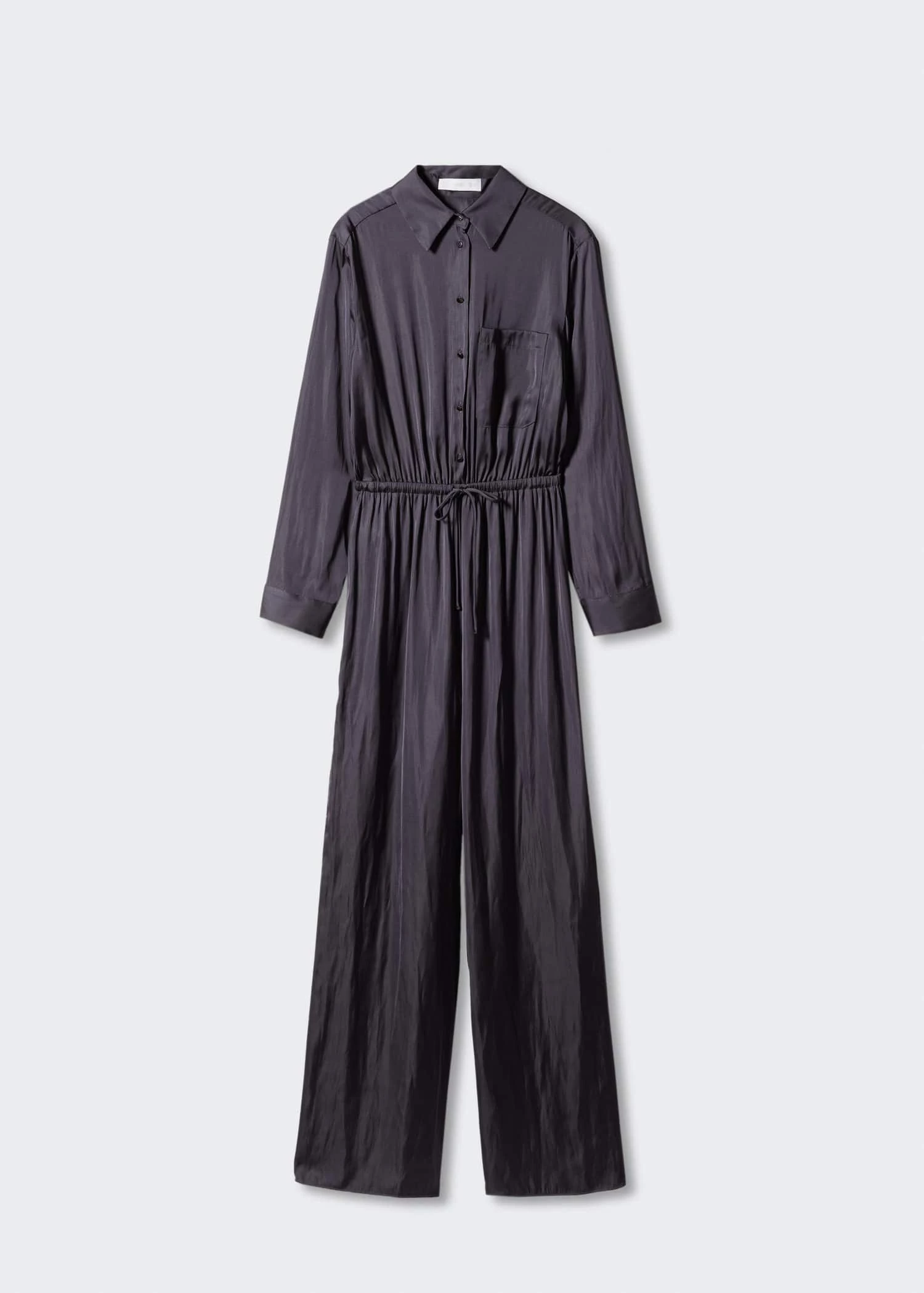 tissu satine, tissu fluide, style chemisier, coupe longue, coupe wideleg, coupe cintree, col chemise, manches longues avec poignets boutonnes, ceinture a nouer a la taille, fermeture boutonnee sur le devant, poche plaquee sur le devantComposition: 100% polyester. Cordon: 100% polyester