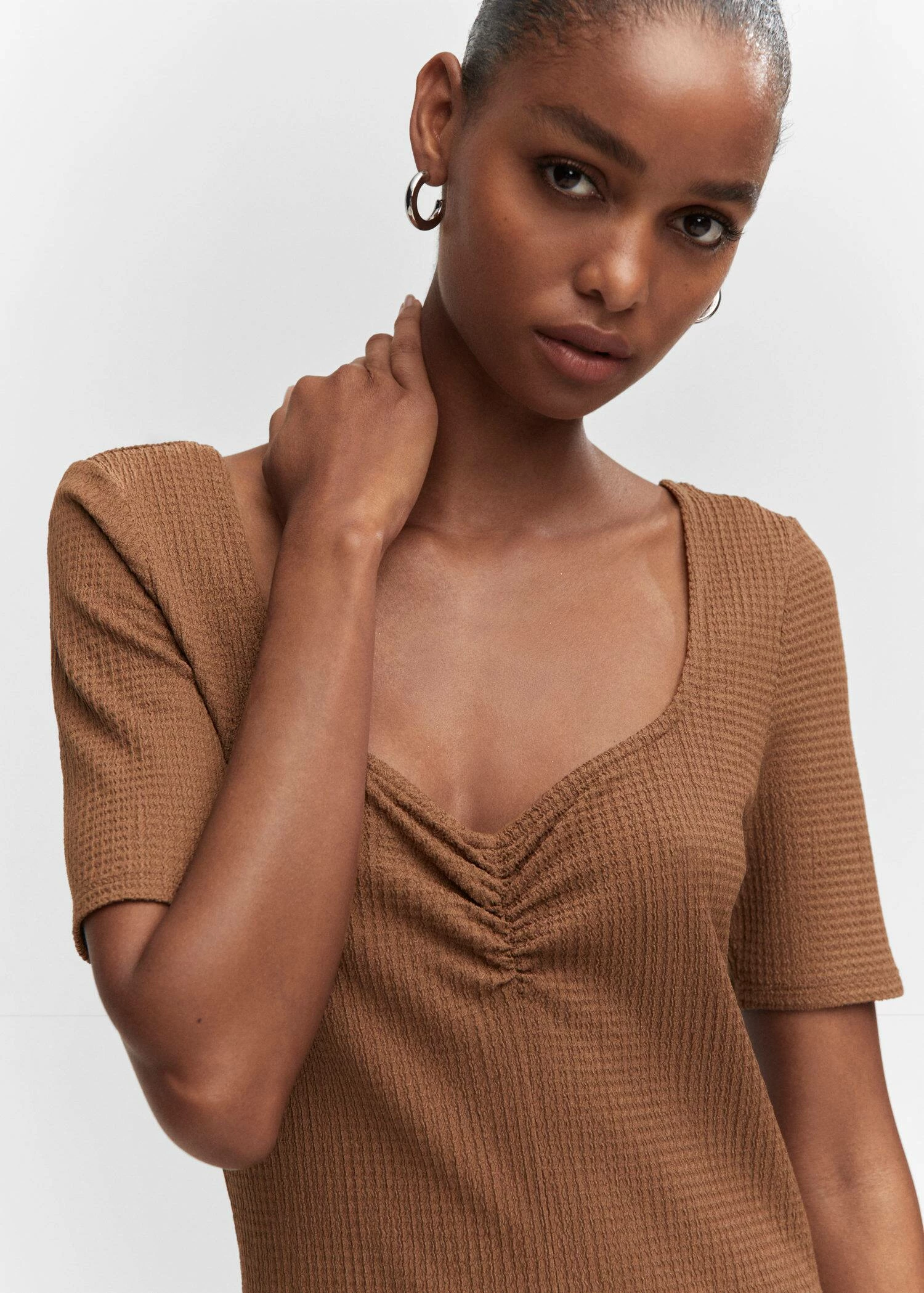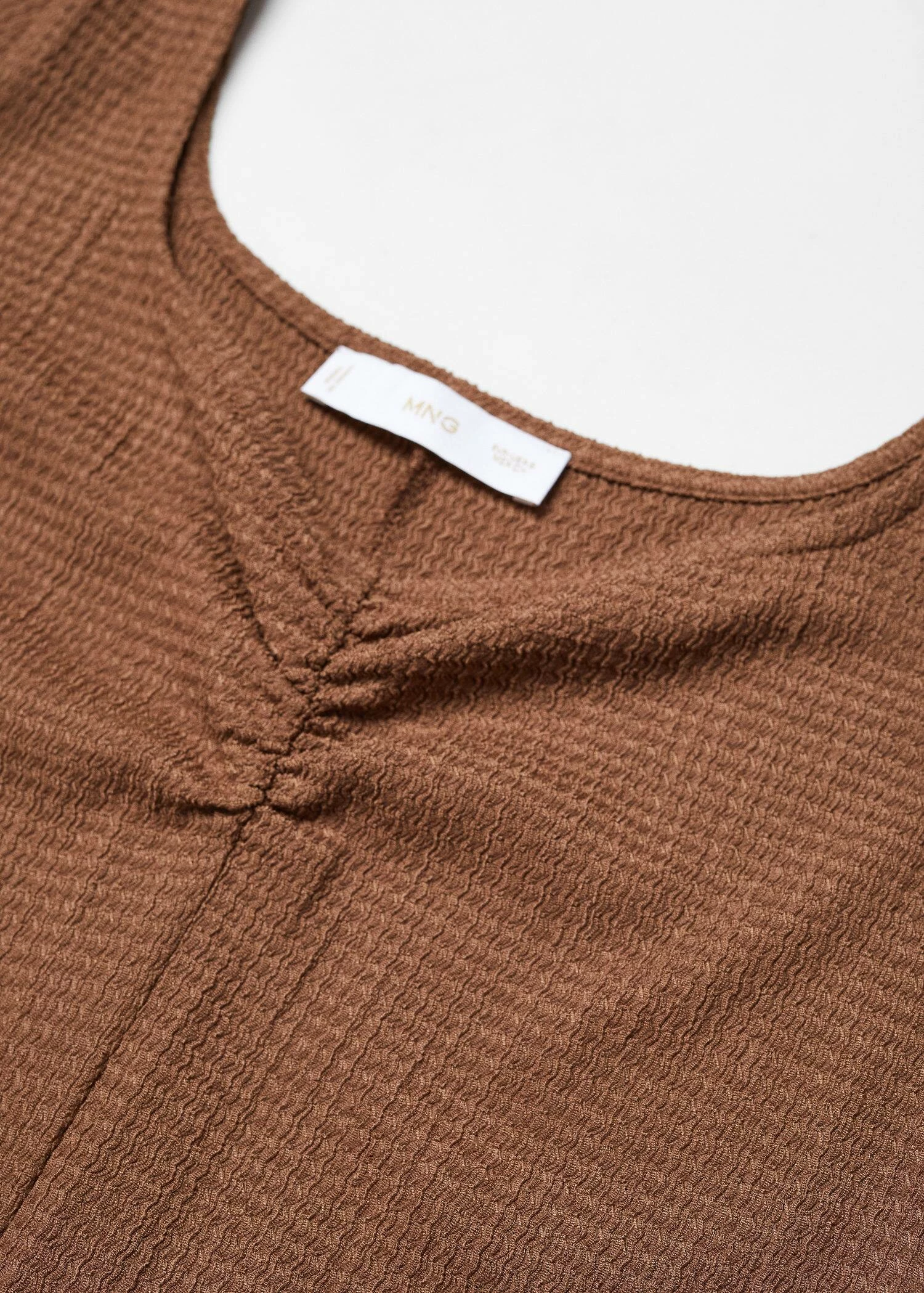 tissu elastique, coupe cintree, style crop, col en v, detail fronce, manches courtes, sans fermetureComposition: 58% polyester,40% polyester recyclé,2% elasthanne