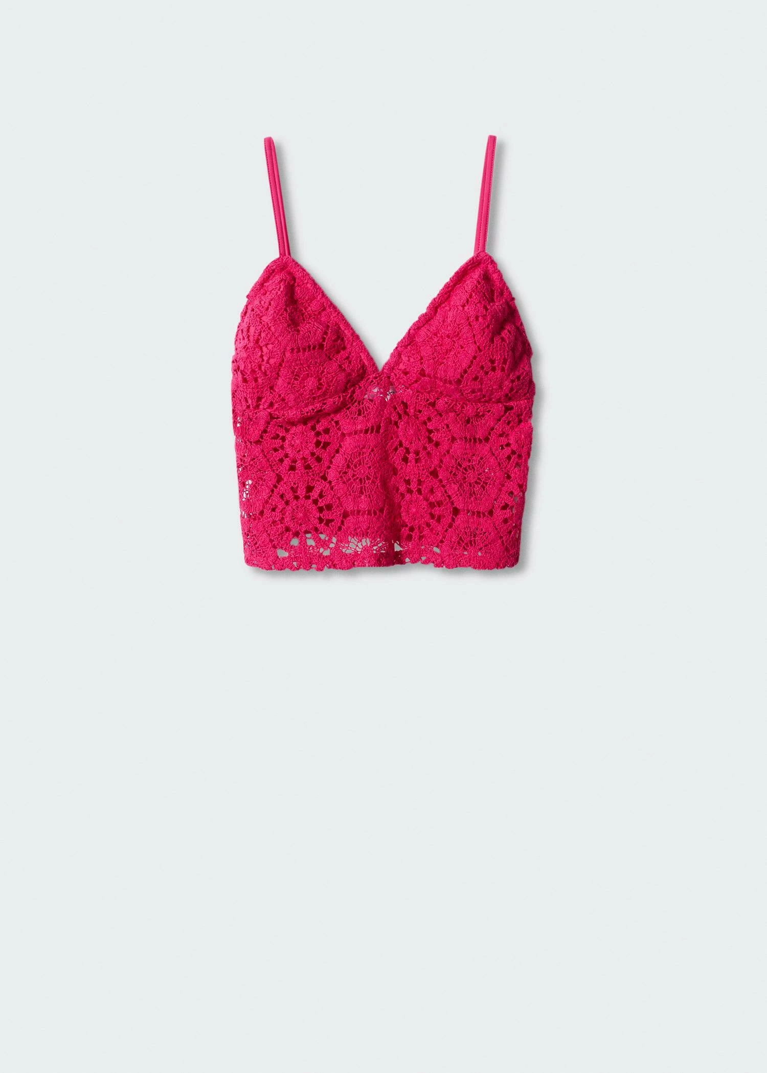 tissu de coton melange, tissu en crochet, ajuste, style crop, col echancre, bretelles fines, bande elastique, sans fermeture, doublure, saison des festivalsComposition: 88% coton,12% polyamide. Doublure: 94% coton,6% elasthanne