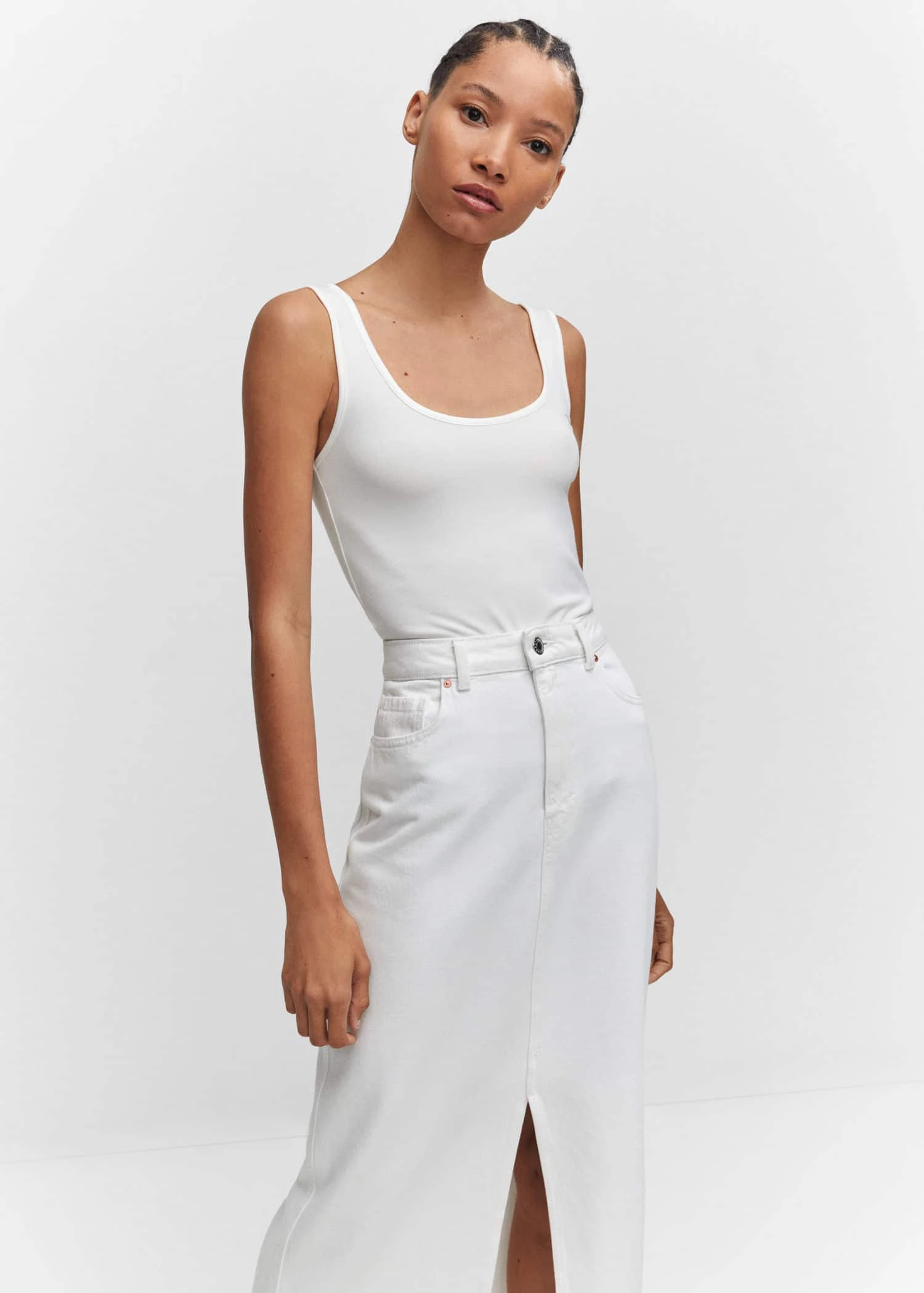 tissu fluide, ajuste, col echancre, bretelles larges, encolure au dosComposition: 95% viscose,5% elasthanne