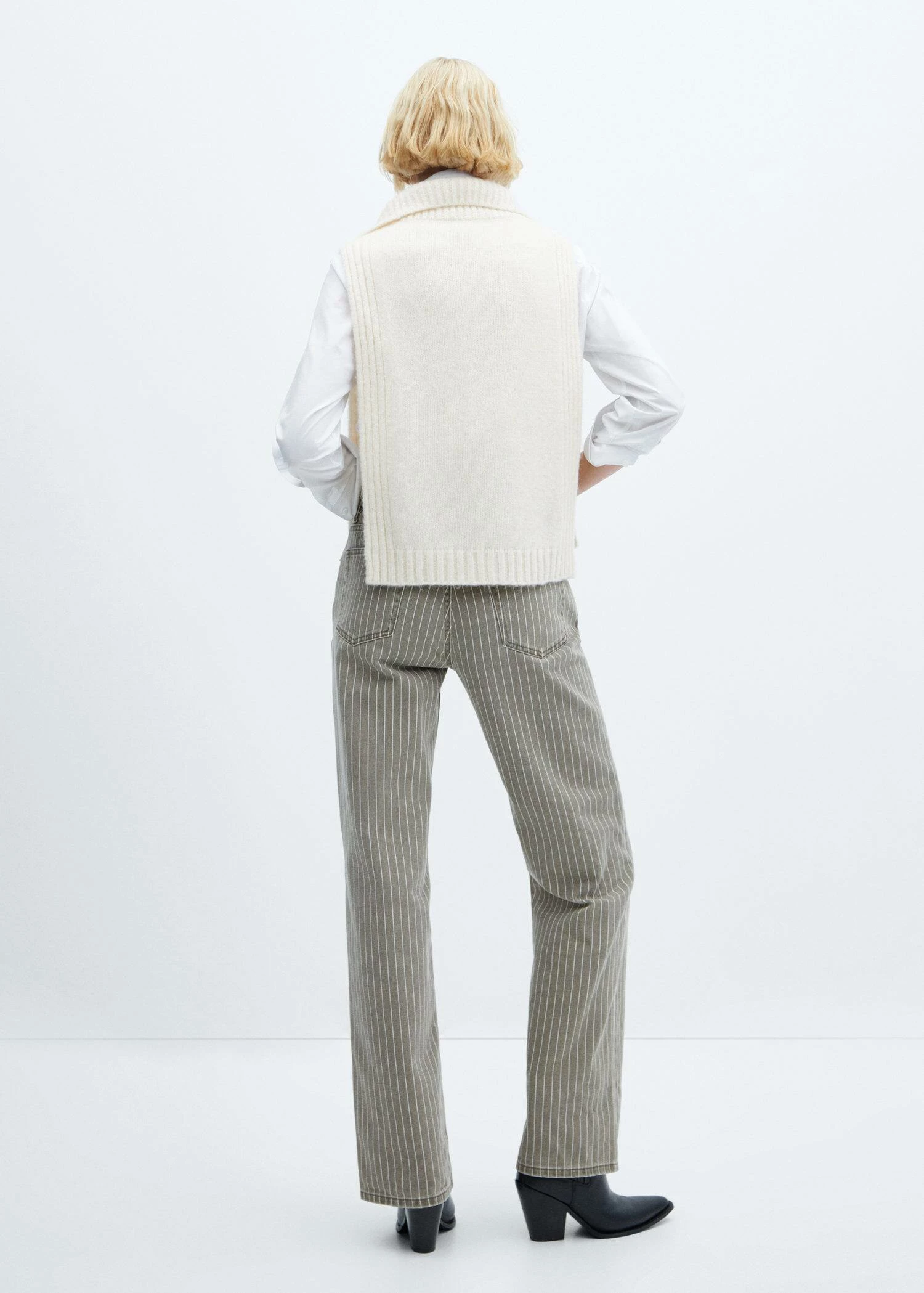 tissu en grosse maille, coupe droite, col roule, fermeture eclair au col, fentes laterales, sans manchesComposition: 40% polyester,30% polyamide,15% laine,12% acrylique,3% alpaca
