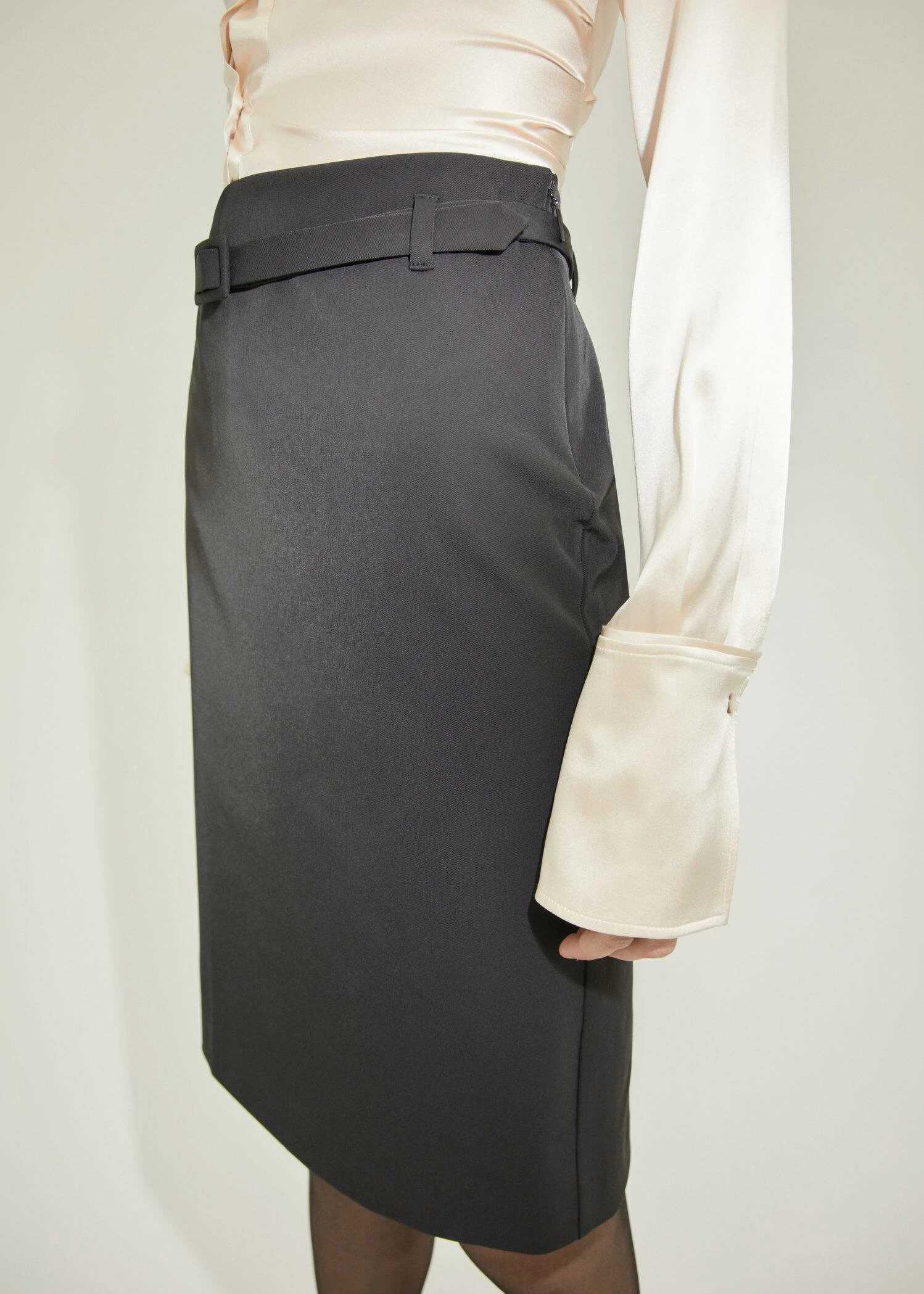 tissu fluide, crayon, coupe midi, taille normale, fermeture laterale, detail d’ouverture au dos, ceinture decorative, collection selection, une selection de pieces qui vous accompagneront lors du retour au bureau. confectionnee avec des matieres de qualite pour creer une garde-robe feminine et contemporaine pour votre quotidien.