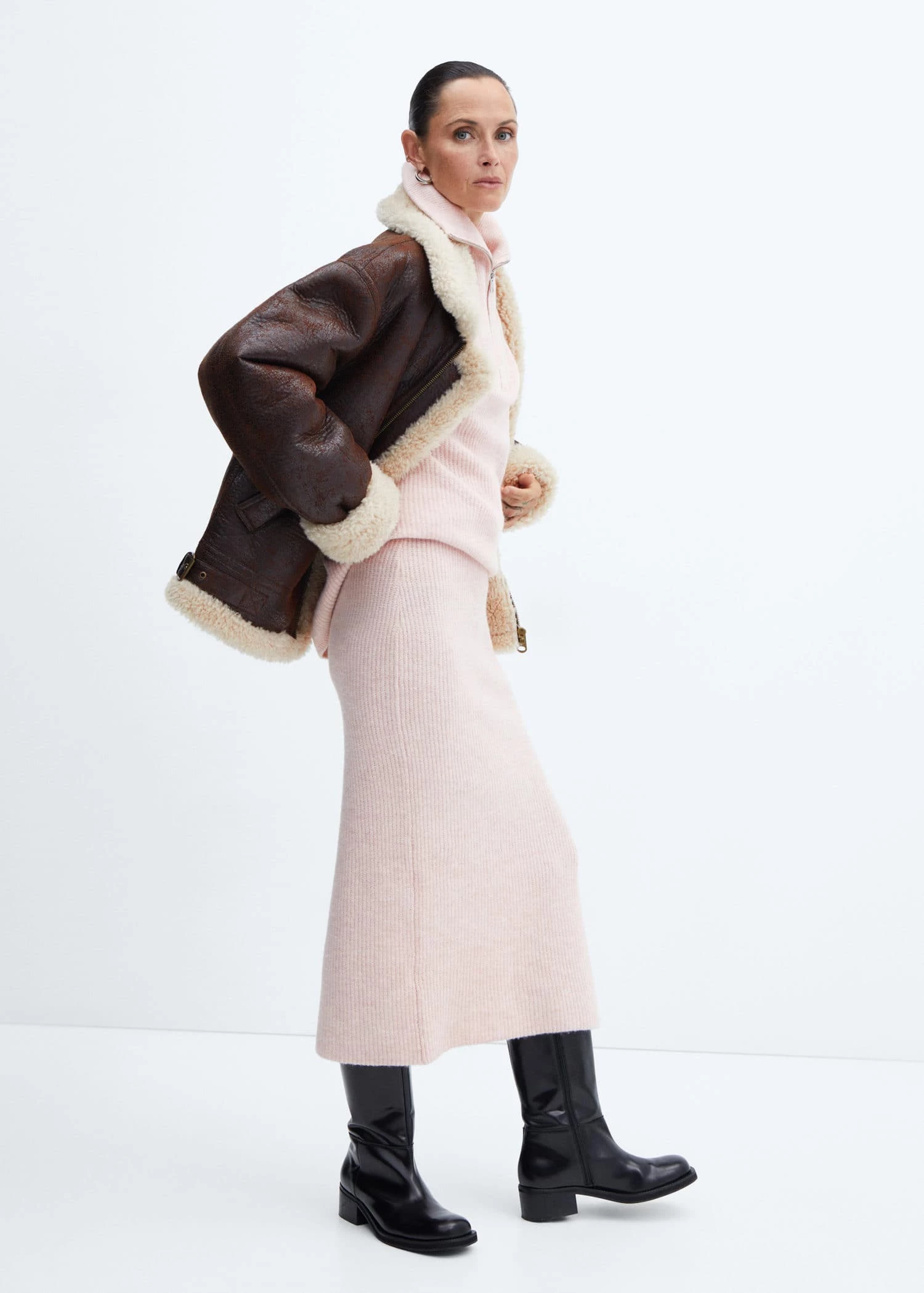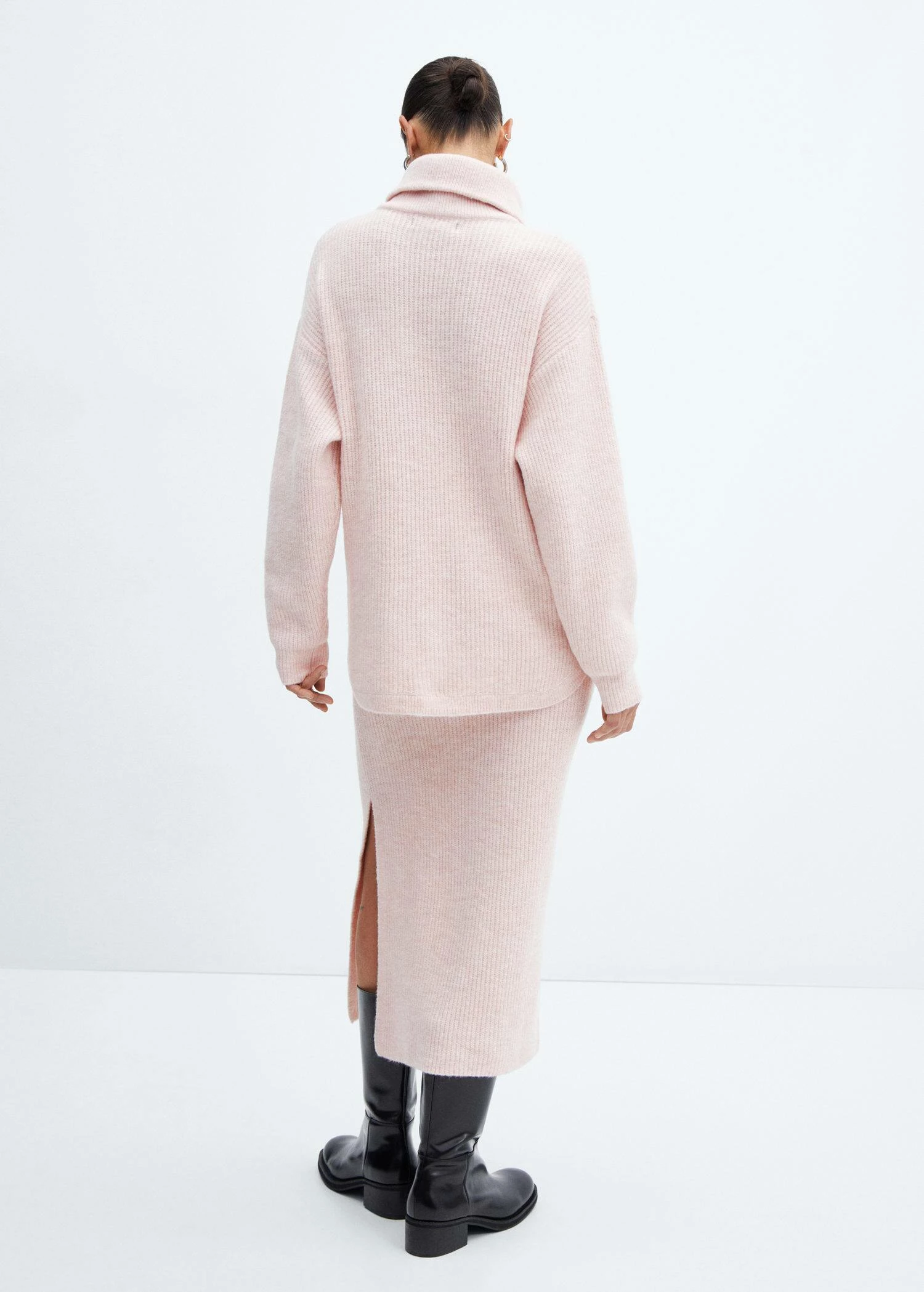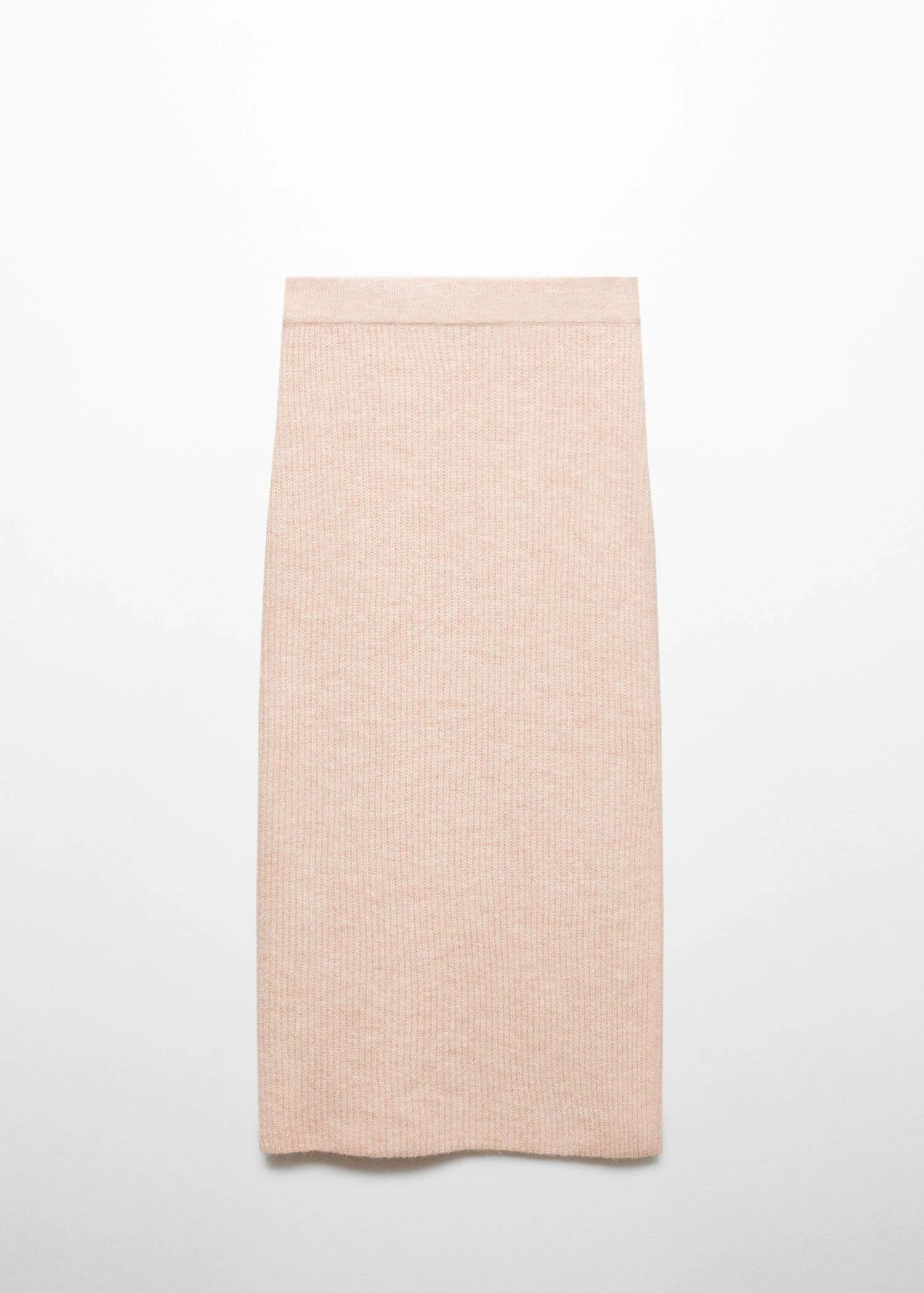 tissu en grosse maille, coupe midi, ajuste, sans fermeture, taille elastiquee, fente laterale en bas, total lookComposition: 65% polyester,27% acrylique,5% laine,3% elasthanne