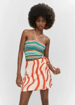 tissu en lin melange, coupe pareo, coupe courte, droit, imprime, fermeture laterale a nœudsComposition: 55% lin,45% viscose