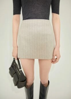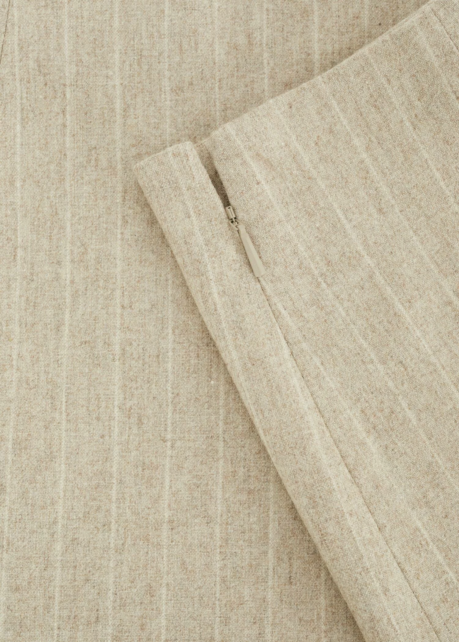 tissu en laine, fines rayures, taille basse, fermeture eclair invisible sur le cote, doublure, collection selection, une selection de pieces qui vous accompagneront lors du retour au bureau. confectionnee avec des matieres de qualite pour creer une garde-robe feminine et contemporaine pour votre quotidien.