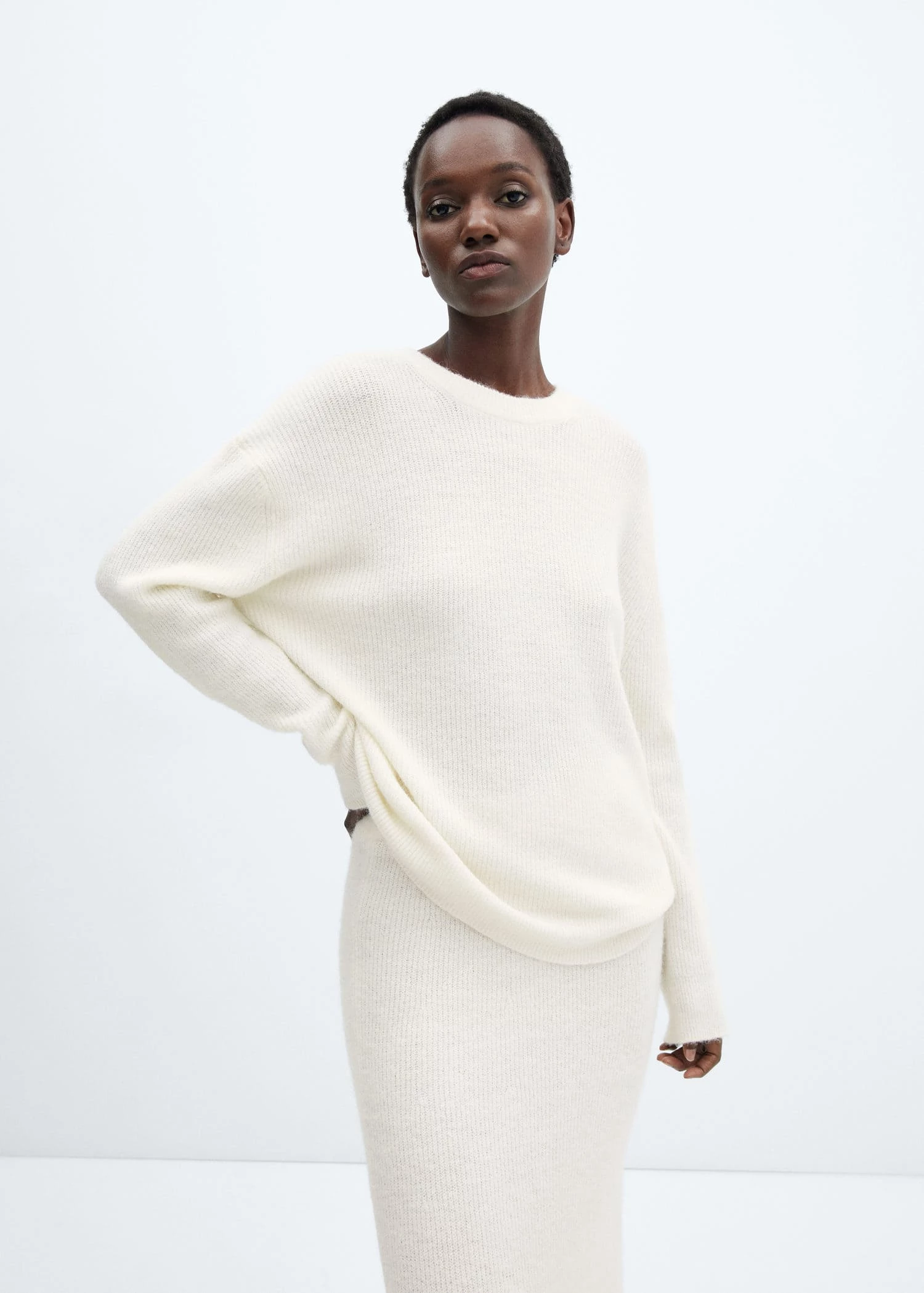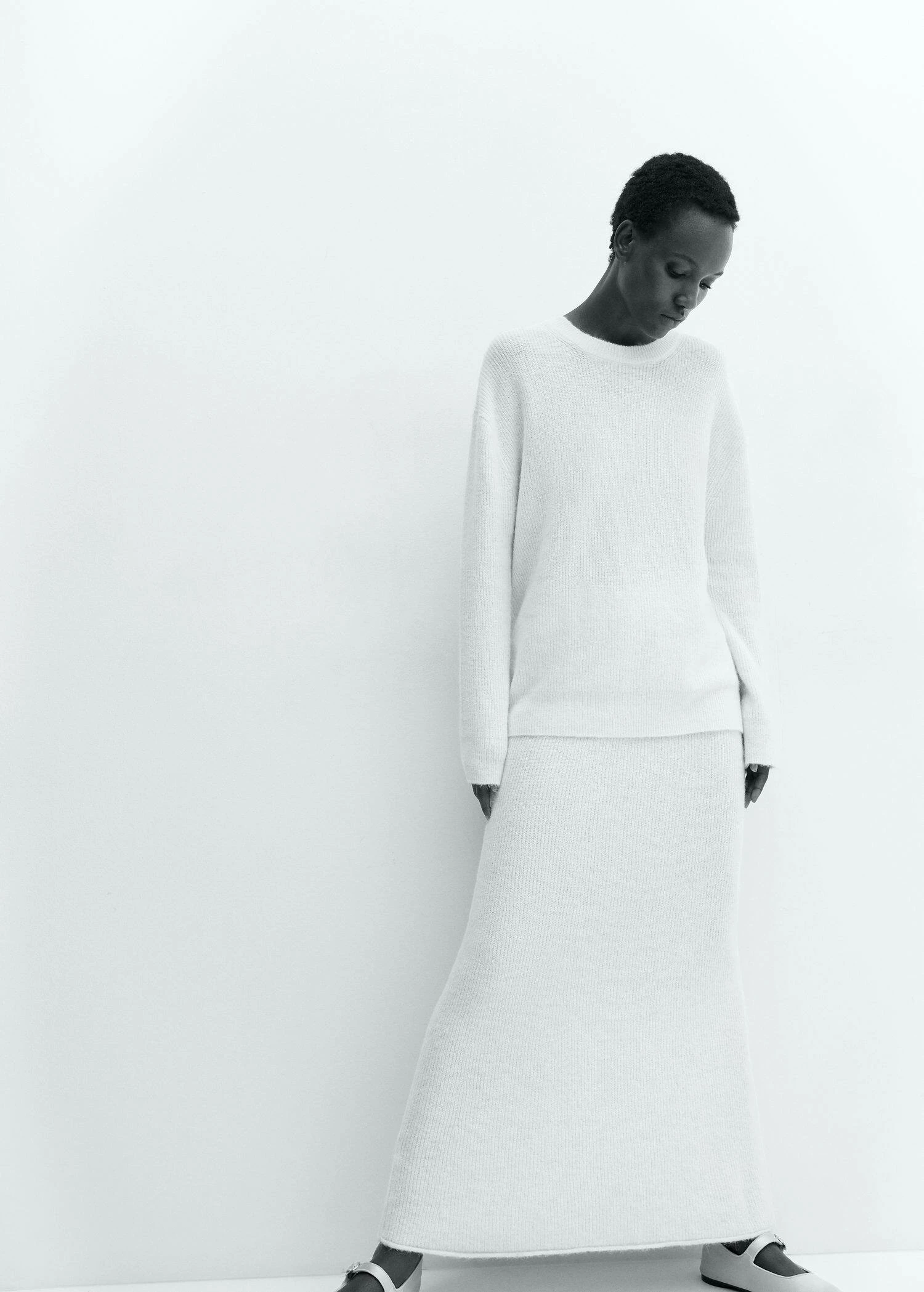melange laine et alpaga, maille moyenne, evase, coupe midi, taille elastique, sans fermeture, total lookComposition: 43% polyester,37% polyamide,9% laine,7% alpaca,4% elasthanne