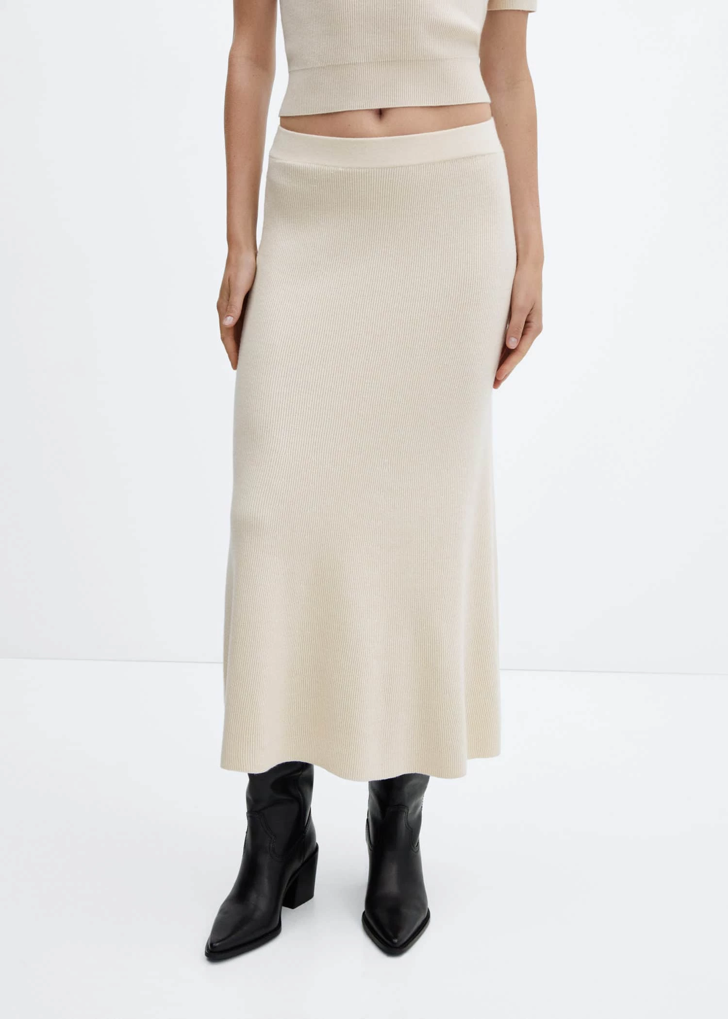 tissu en maille fine, coupe midi, evase, taille elastiquee, sans fermeture, total lookComposition: 50% viscose,27% polyester,23% polyamide