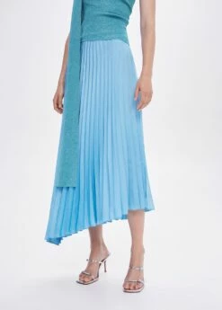 tissu satine, tissu fluide, asymetrique, design plisse, evase, coupe midi, bas asymetrique, collection fetes et ceremonies, une selection de pieces raffinees, fabriquees a partir de materiaux de qualite pour creer une garde-robe feminine et contemporaine pour les grandes occasionsComposition: 100% polyester