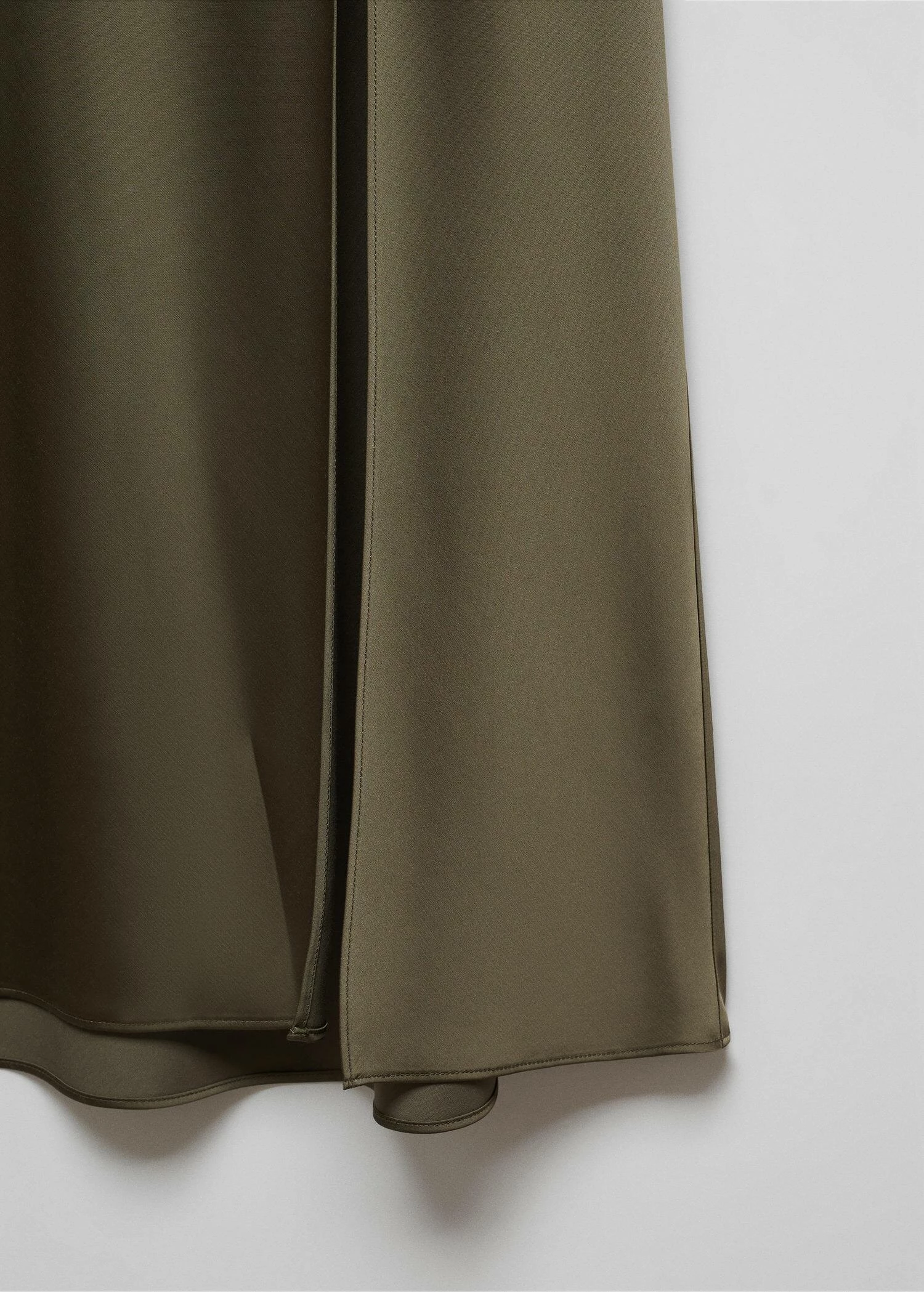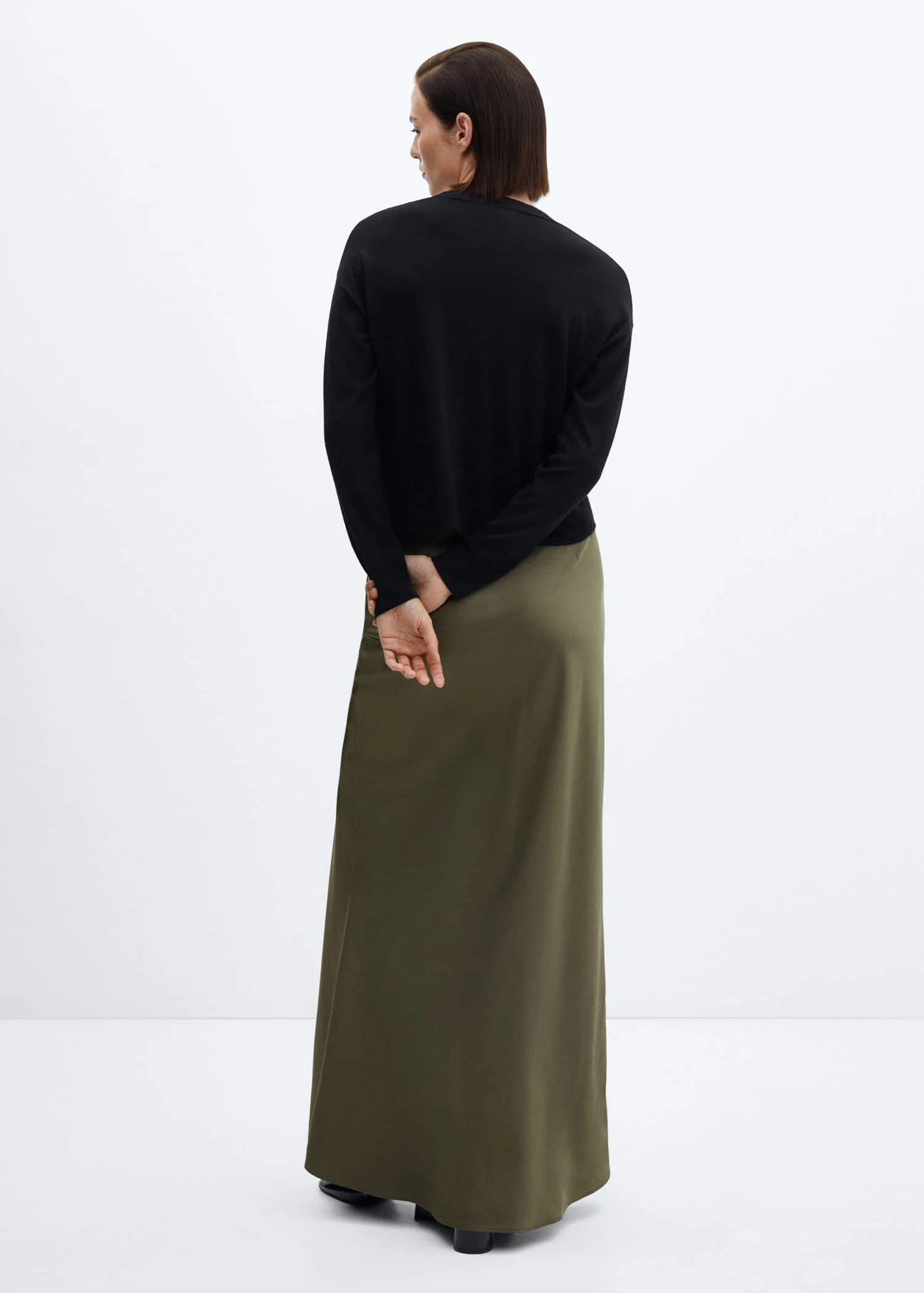 tissu fluide, coupe maxi, taille normale, effet satine, sans fermeture, taille elastiquee, fente laterale, disponible plusComposition: 52% polyester,48% viscose