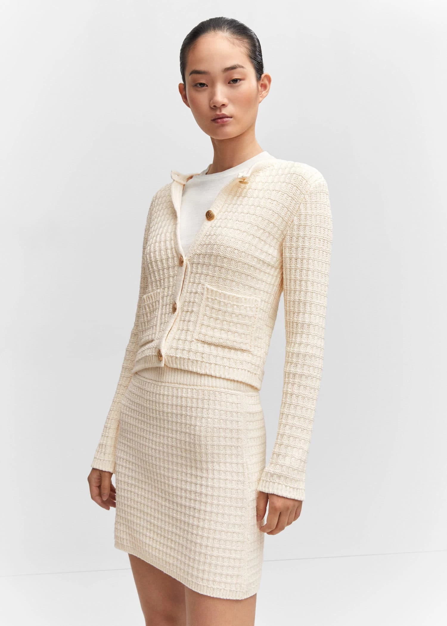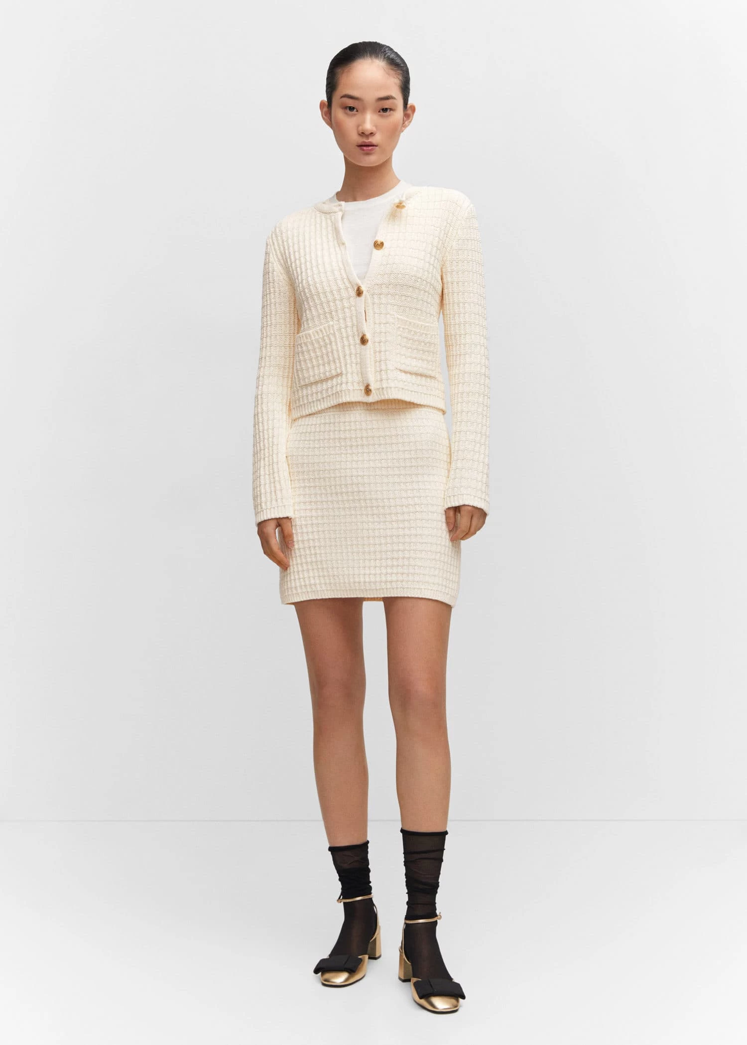 tissu en grosse maille, coupe droite, coupe courte, taille elastiquee, sans fermeture, total lookComposition: 55% polyester,45% coton