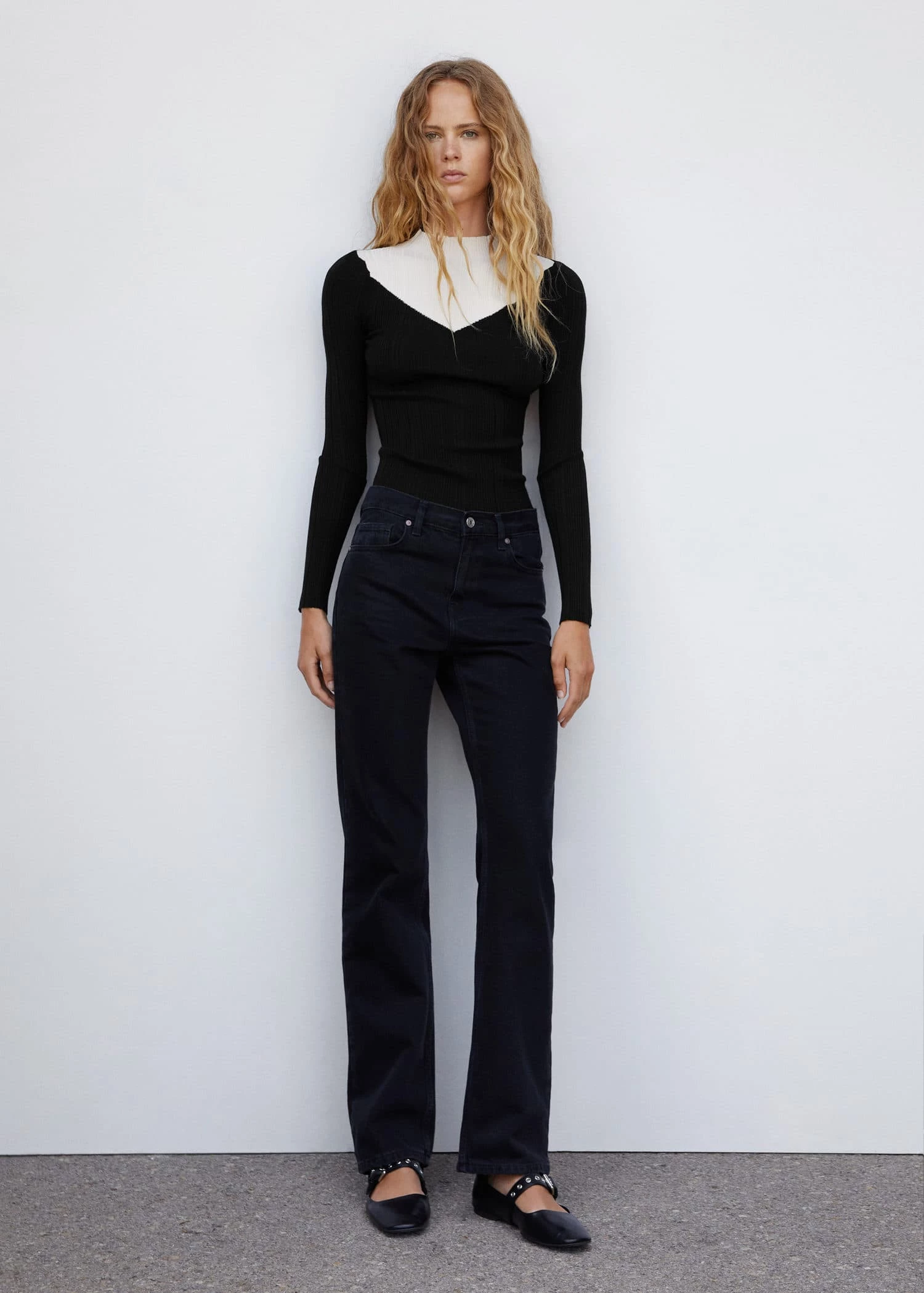 tissu en maille fine, tissu en maille cotelee, ajuste, bicolore, col montant, manches longuesComposition: 68% viscose,32% polyester