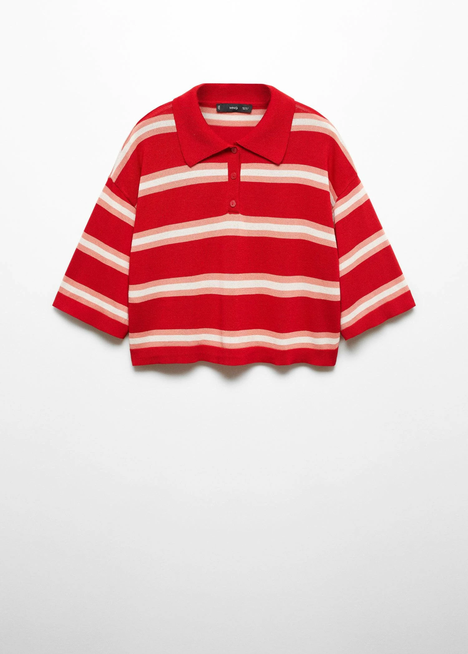 tissu en maille fine, style crop, style oversize, imprime rayures, col polo boutonne, manches courtesComposition: 53% viscose,47% polyamide