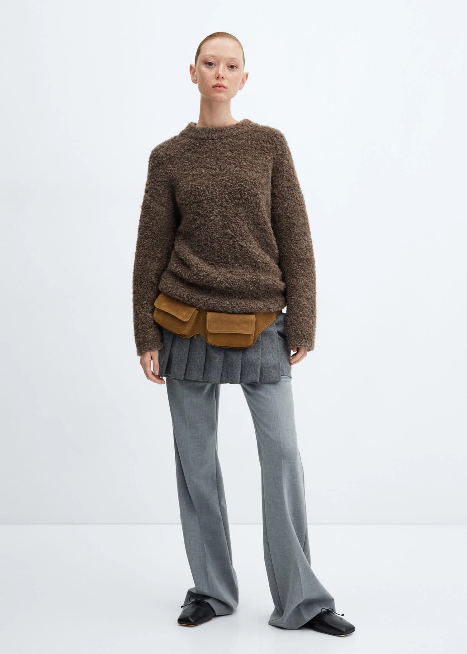 tissu de laine melange, maille moyenne, coupe longue, droit, texture, col rond, manches longues, sans fermetureComposition: 78% polyester,15% polyamide,5% laine,2% elasthanne