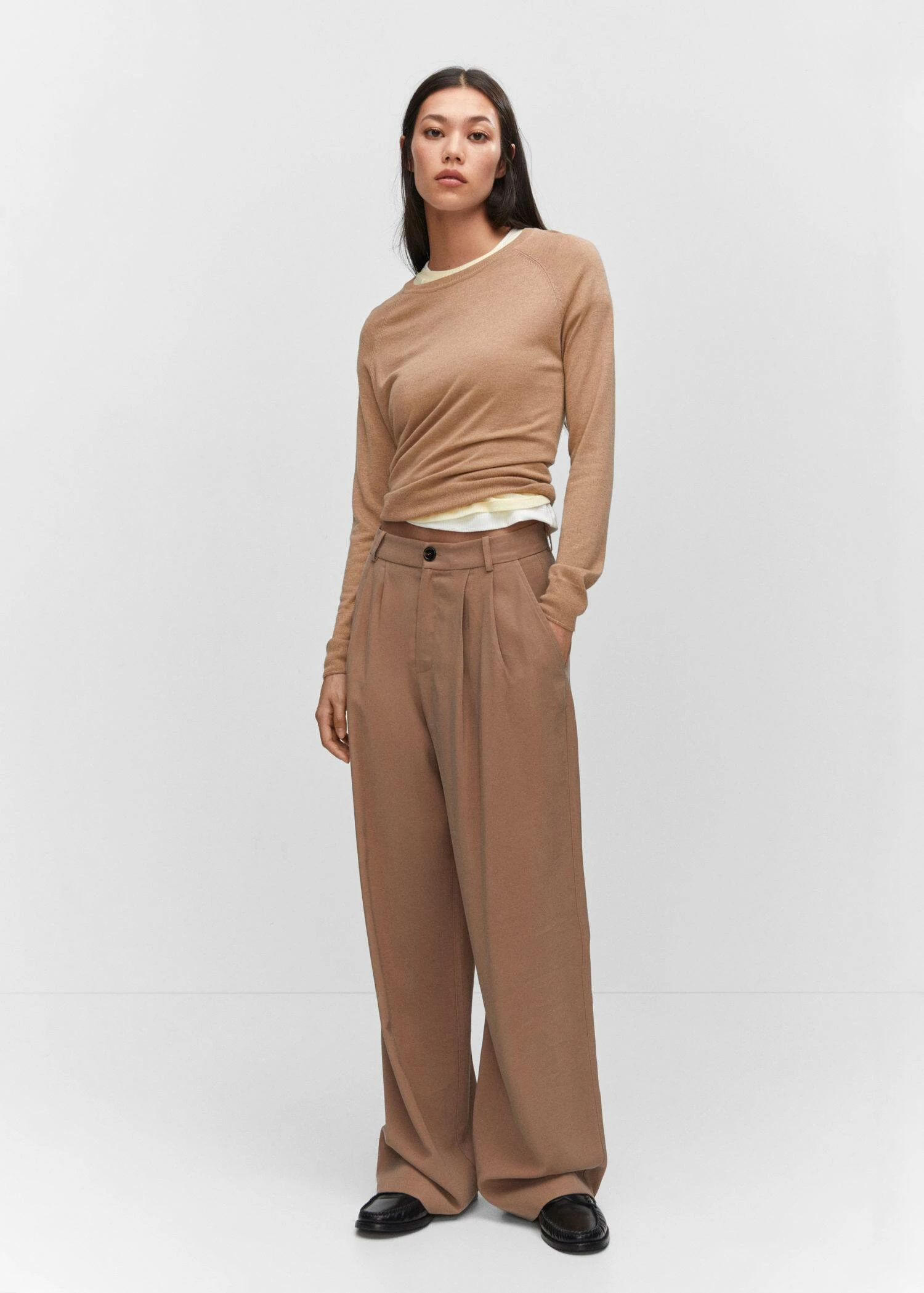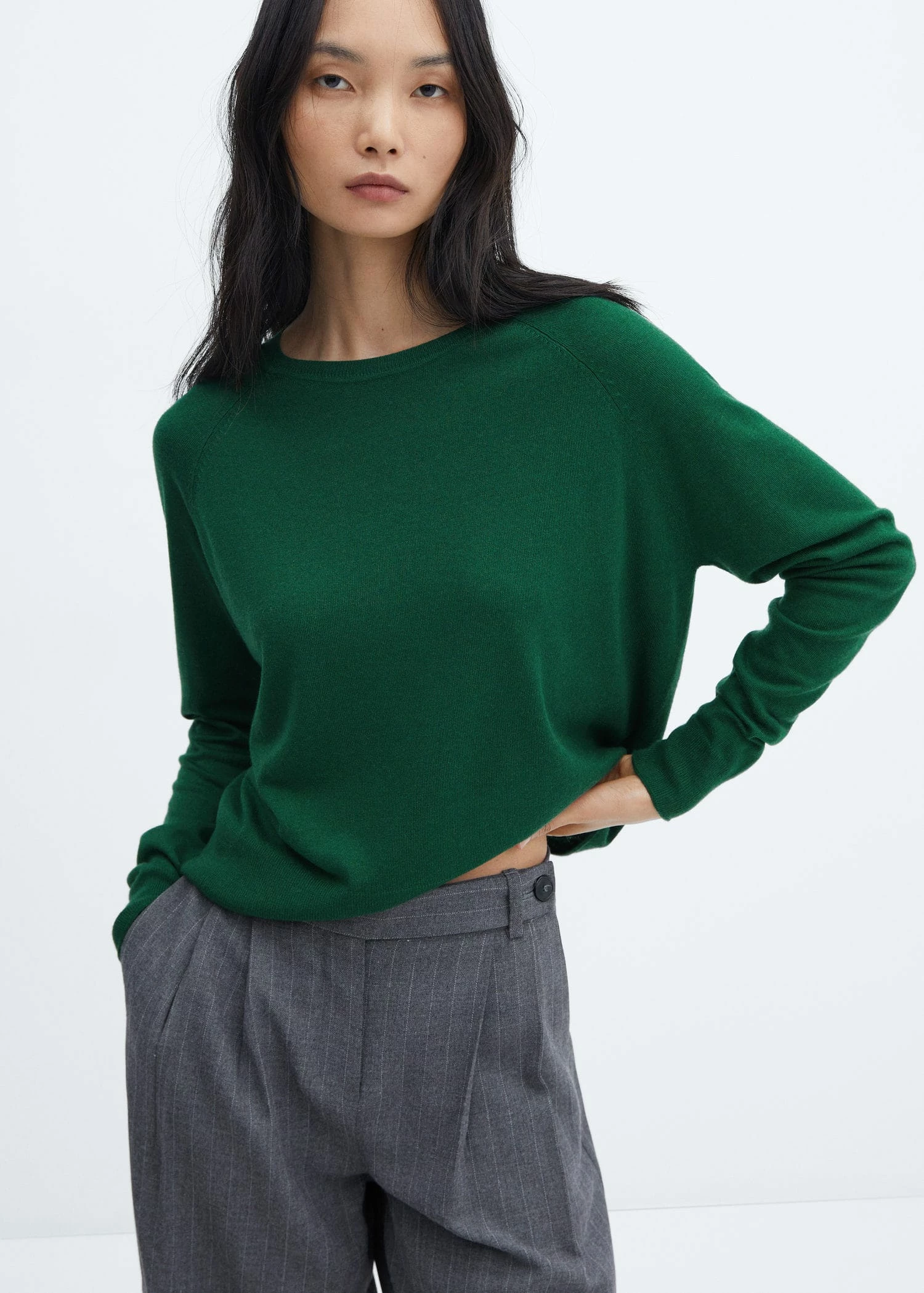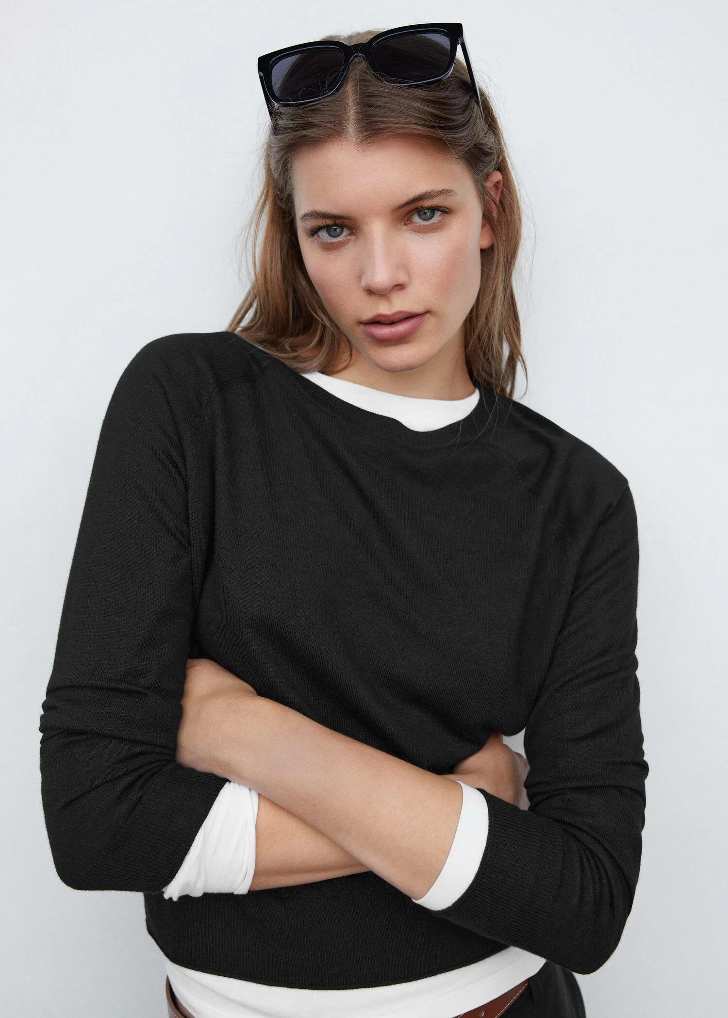 tissu en maille fine, coupe droite, col rond, manches longues, bords coteles, disponible plusComposition: 38% viscose,34% polyester,22% polyamide,6% cashmere