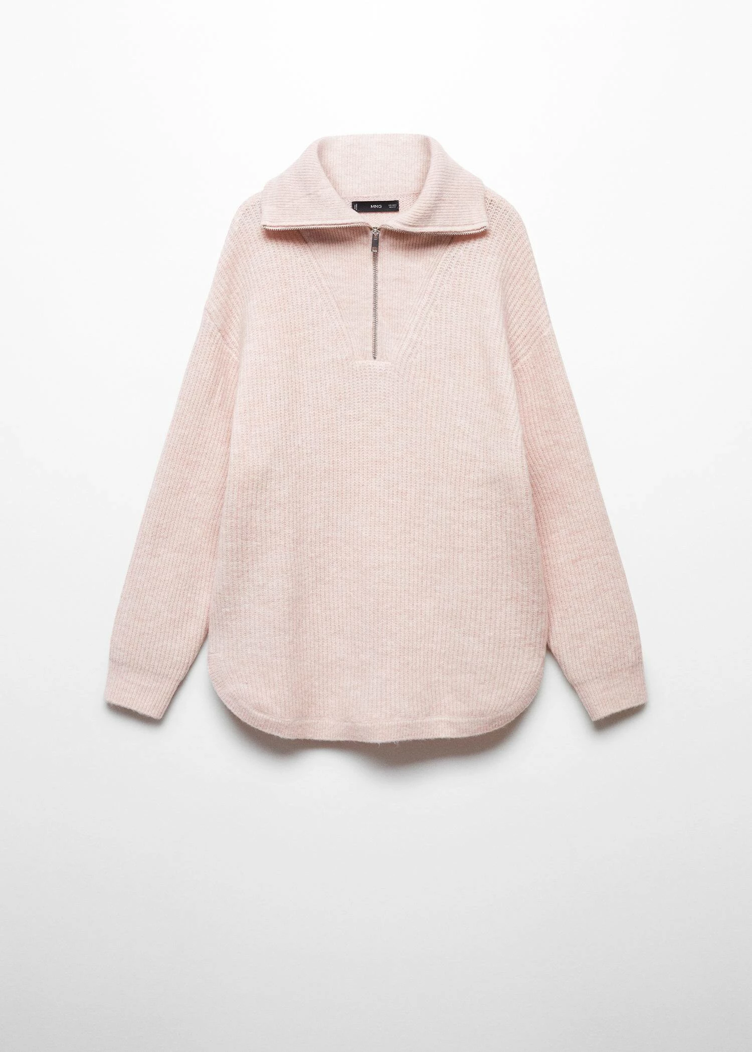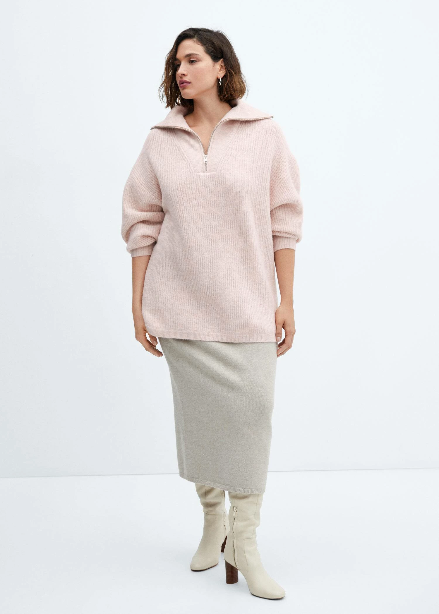 tissu en grosse maille, style oversize, coupe longue, col montant a fermeture eclair, manches longues, couture tombante sur l’epaule, total lookComposition: 65% polyester,27% acrylique,5% laine,3% elasthanne