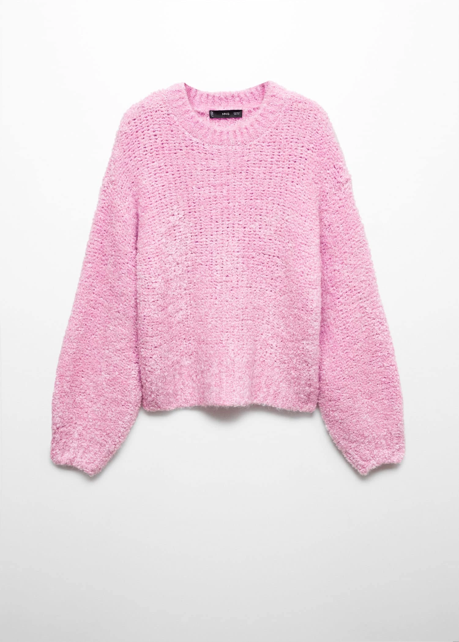 maille moyenne, coupe droite, col rond, manches longues bouffantes, sans fermetureComposition: 83% acrylique,17% polyester