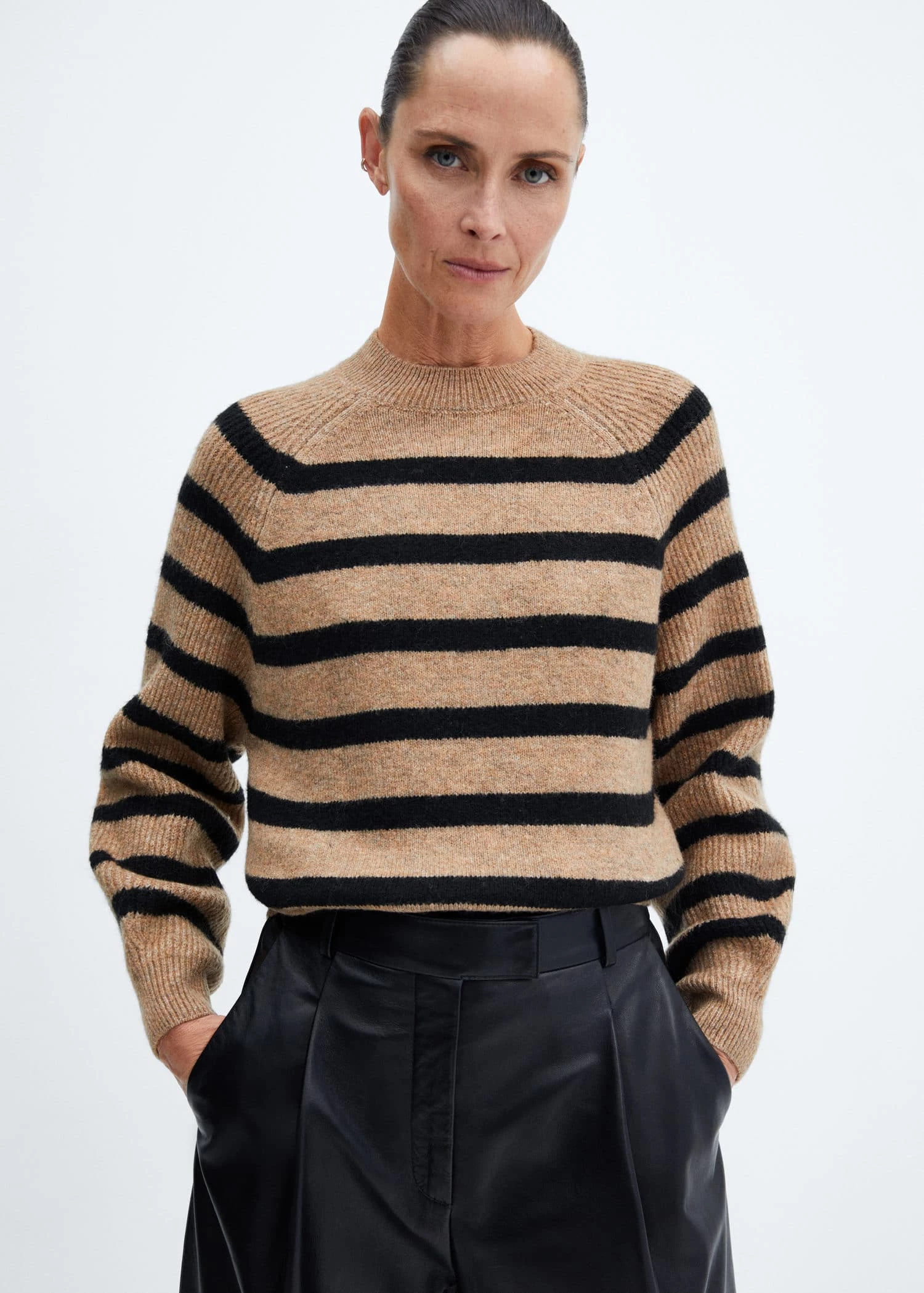 tissu en grosse maille, imprime rayures, coupe droite, col montant, manches longues, bords coteles, disponible plusComposition: 49% acrylique,44% polyester,5% laine,2% elasthanne