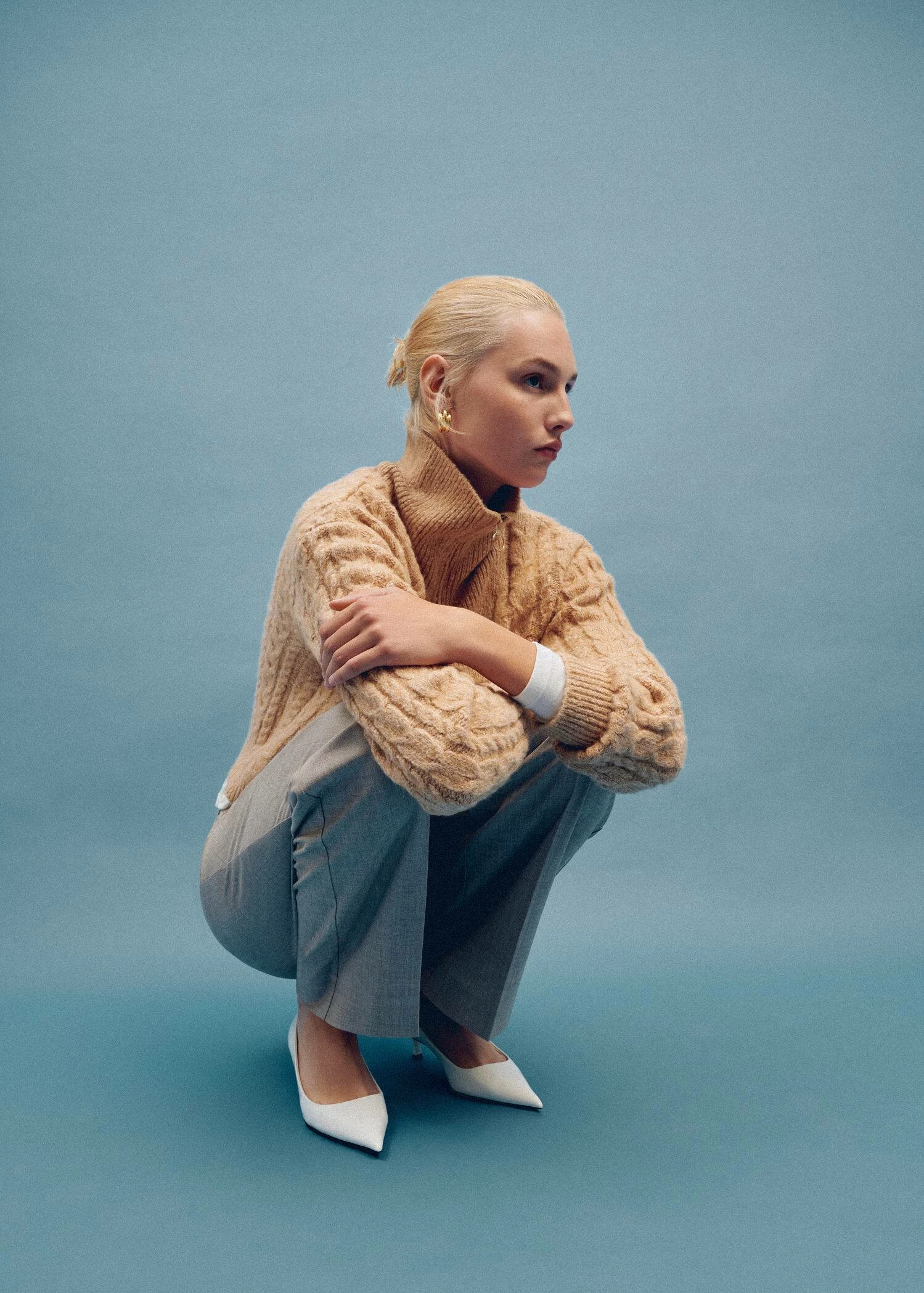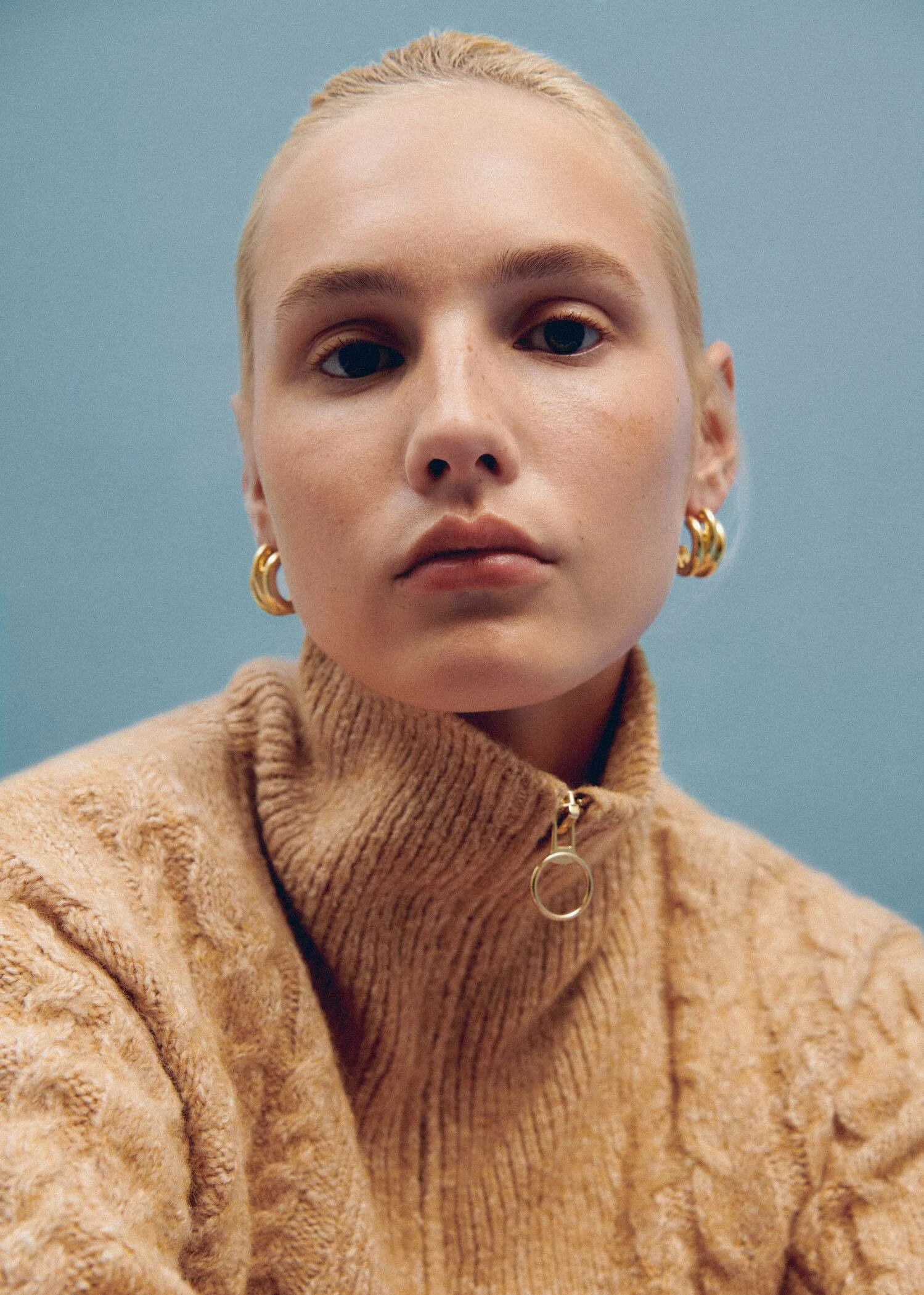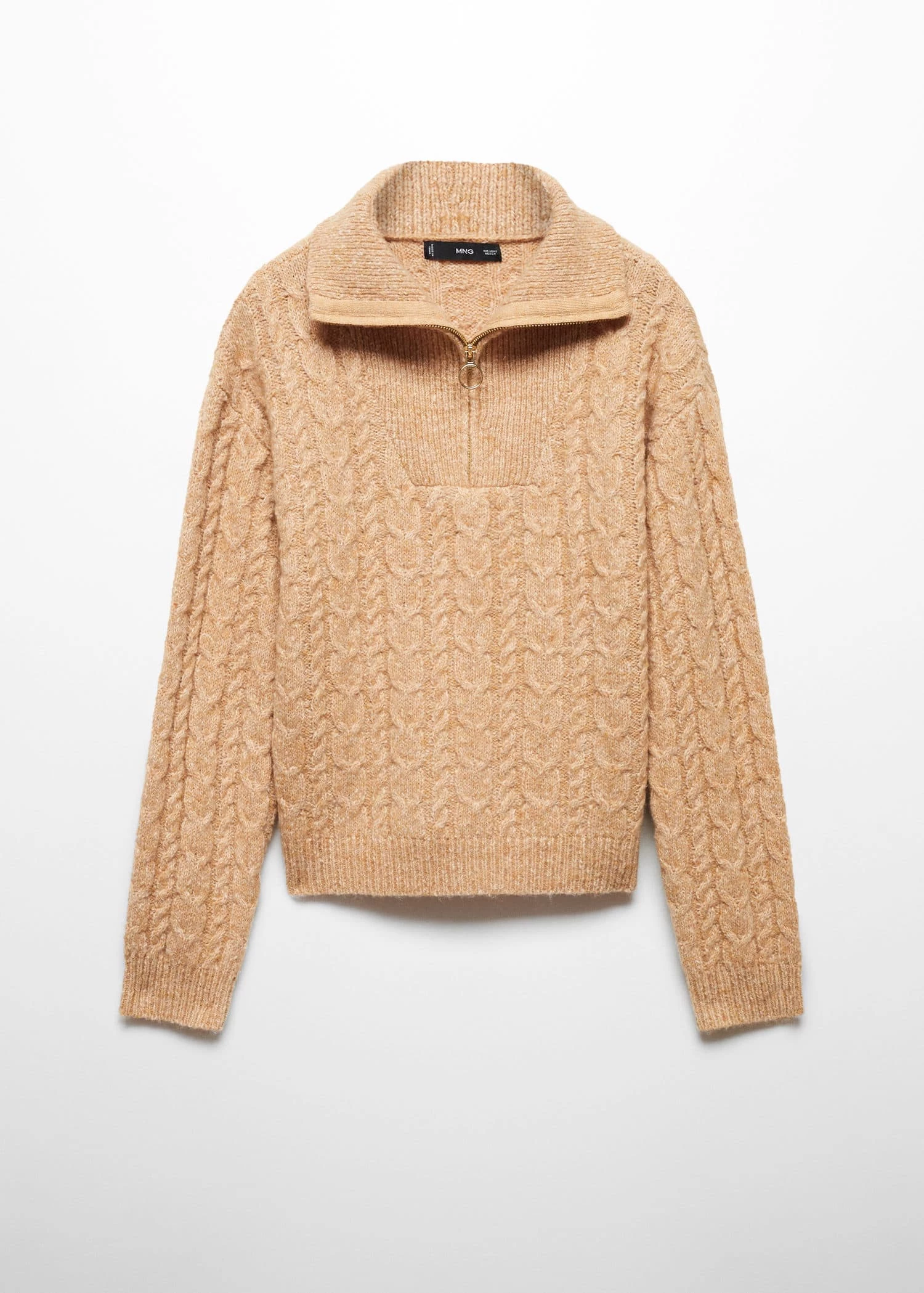 tissu de laine melange, tissu en grosse maille, maille torsadee, coupe droite, col montant a fermeture eclair, manches longues, bords coteles au niveau du col, des manches et sur le basComposition: 66% polyester,16% coton,13% acrylique,4% laine,1% elasthanne