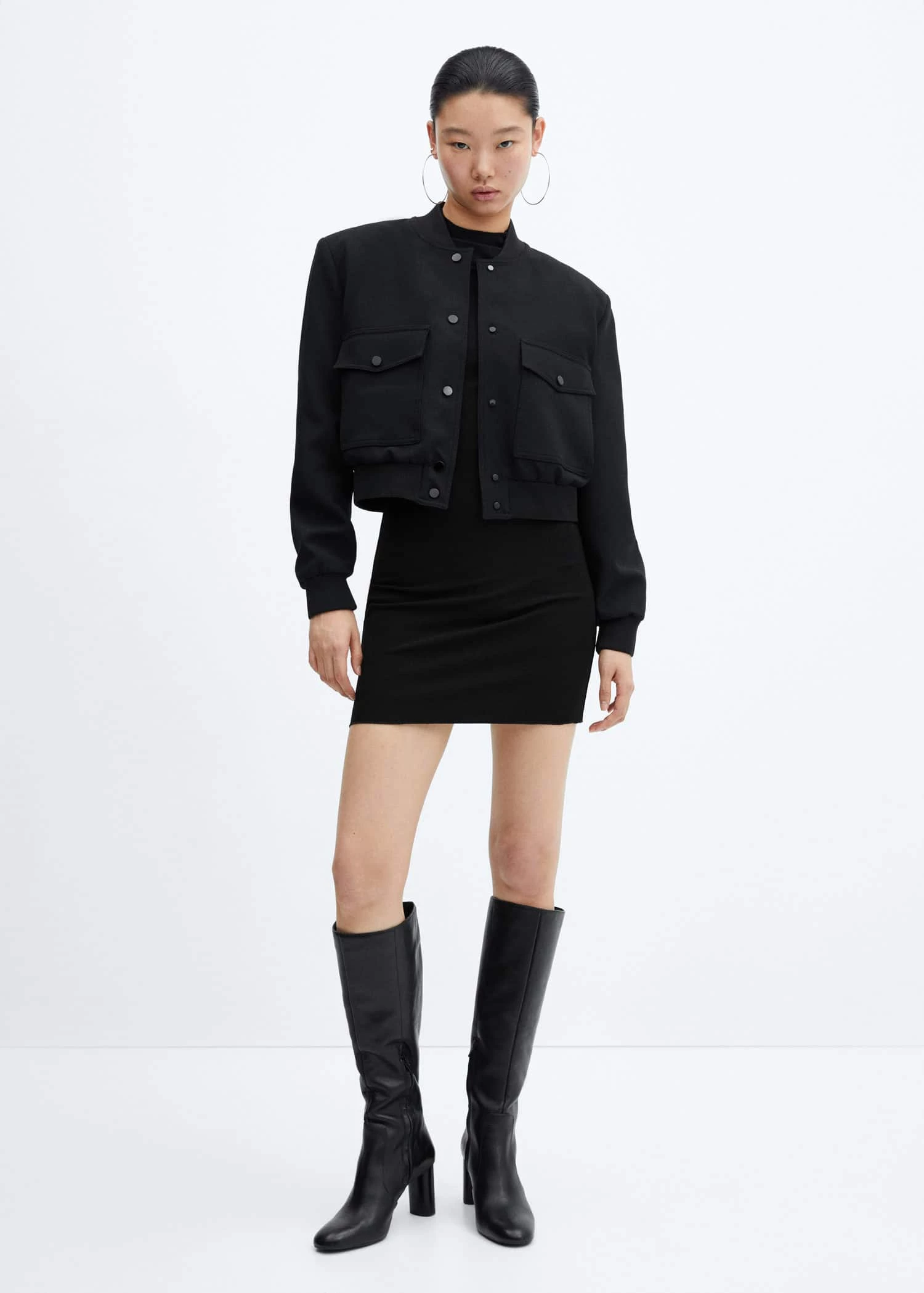 tissu fluide, coupe courte, ajuste, col roule, manches longues, fermeture eclair a l’arriere, looks de bureauComposition: 98% polyester,2% elasthanne