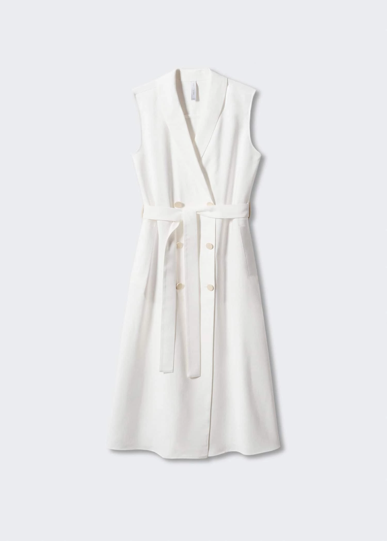 tissu fluide, croise, droit, coupe midi, col en v avec rabat, sans manches, fermeture boutonnee sur le devant, nœud a la taille, doublureComposition: 93% viscose,7% polyester. Doublure: 83% polyester,17% coton. Ceinture: 93% viscose,7% polyester