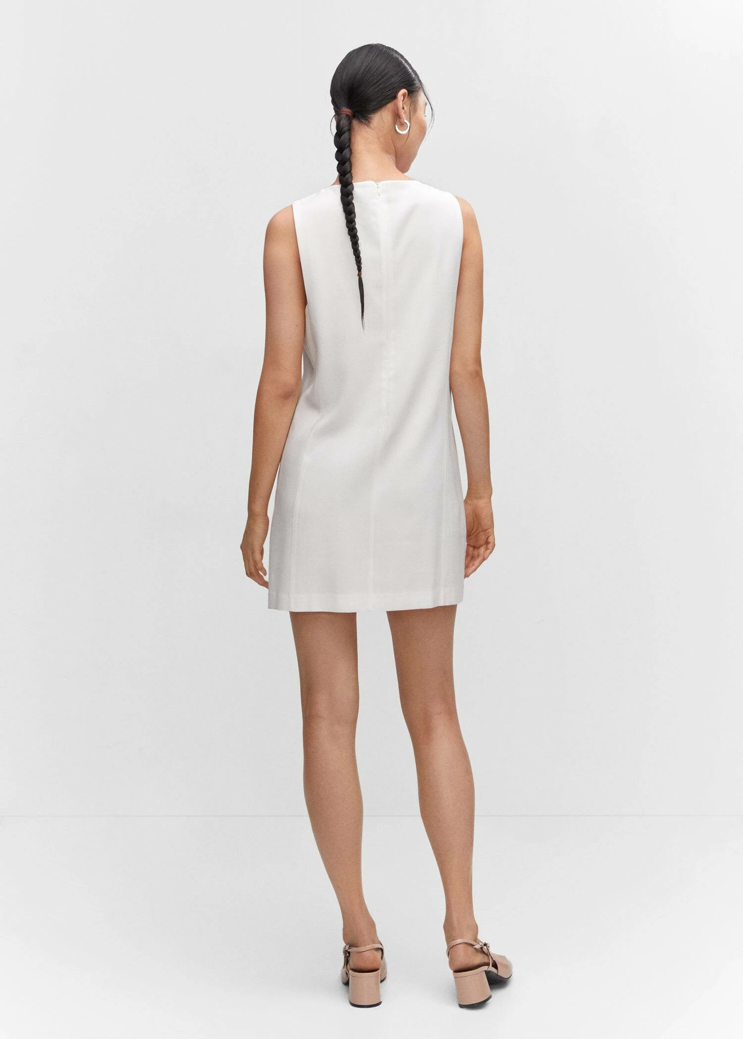 tissu fluide, coupe droite, coupe courte, col rond, sans manches, fermeture eclair a l’arriere, doublure, la couleur blanche est une exclusivite en ligneComposition: 93% viscose,7% polyester. Doublure: 100% viscose