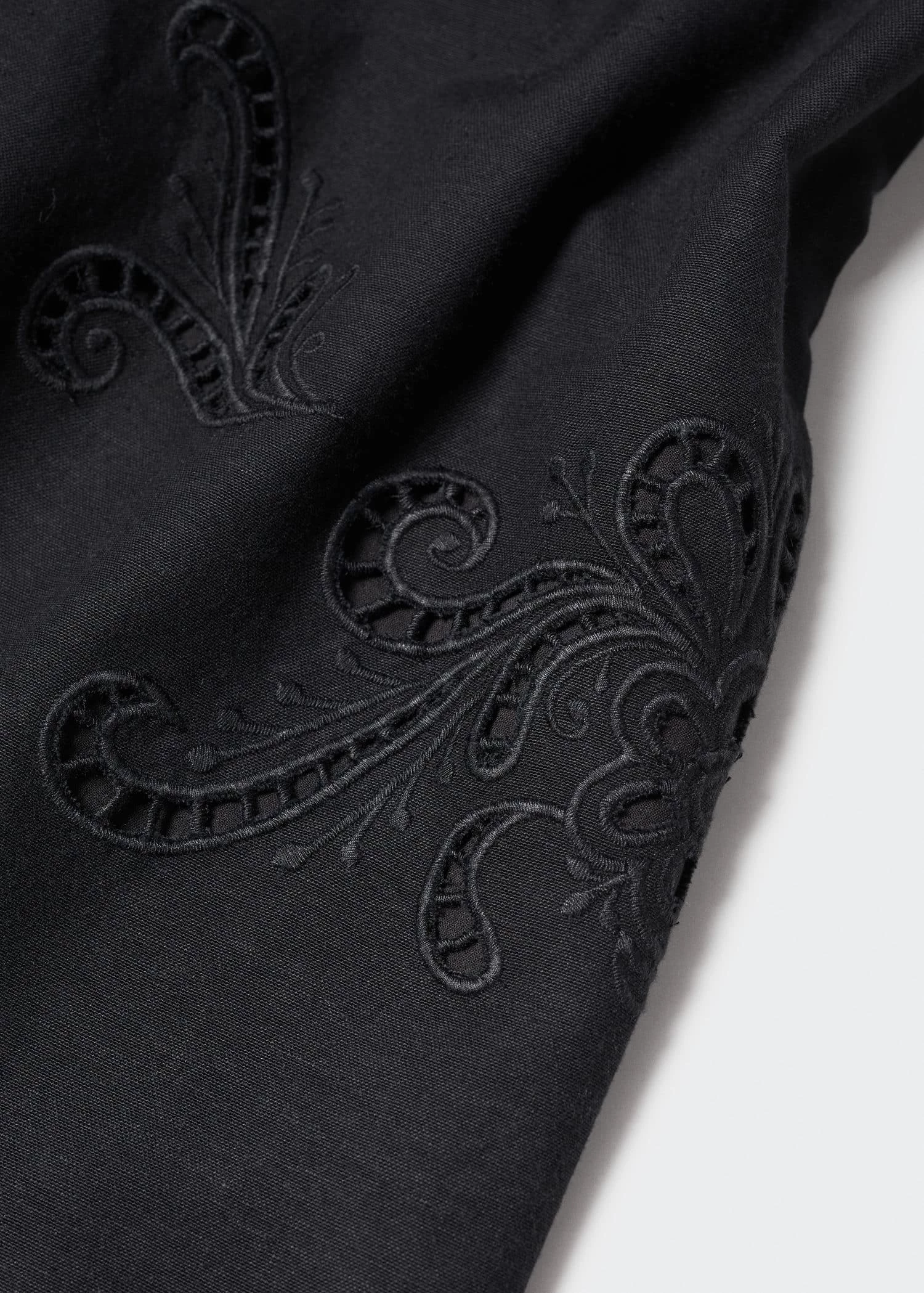 tissu de coton et lin melange, droit, coupe courte, emmanchures americaines, bretelles fines, sans fermeture, details brodesComposition: 46% viscose,41% coton,13% lin. Doublure: 100% coton