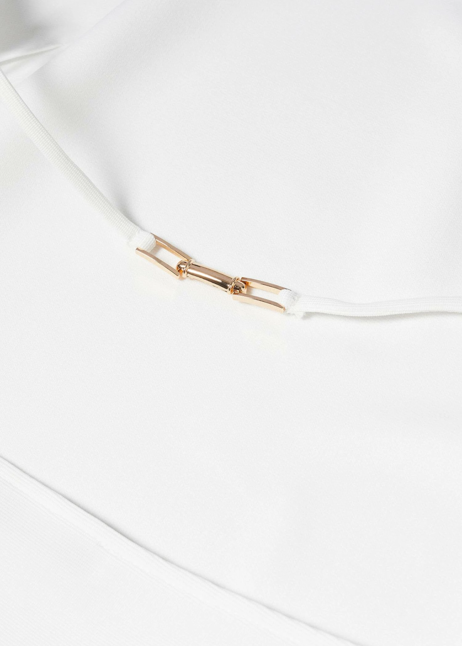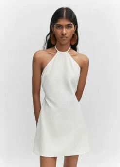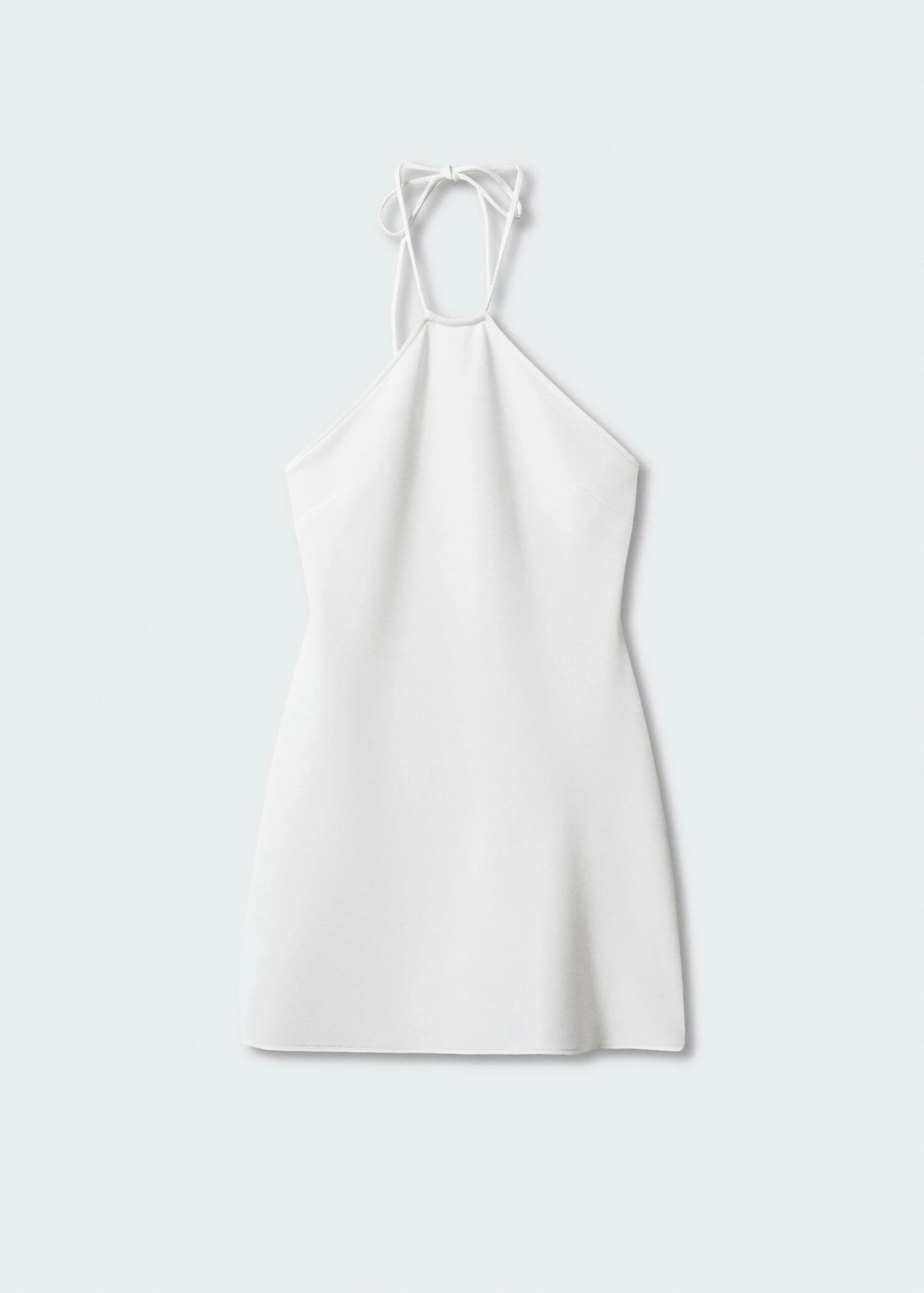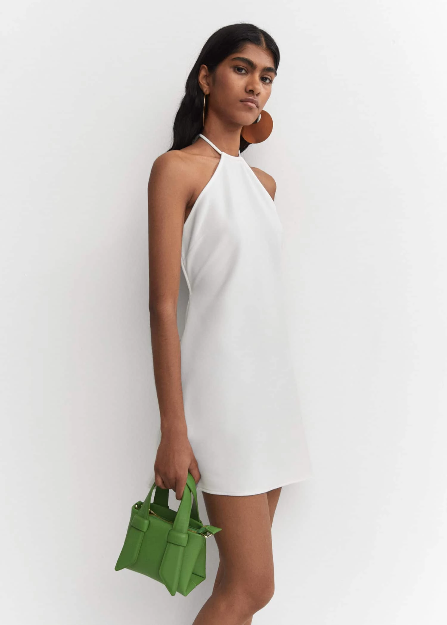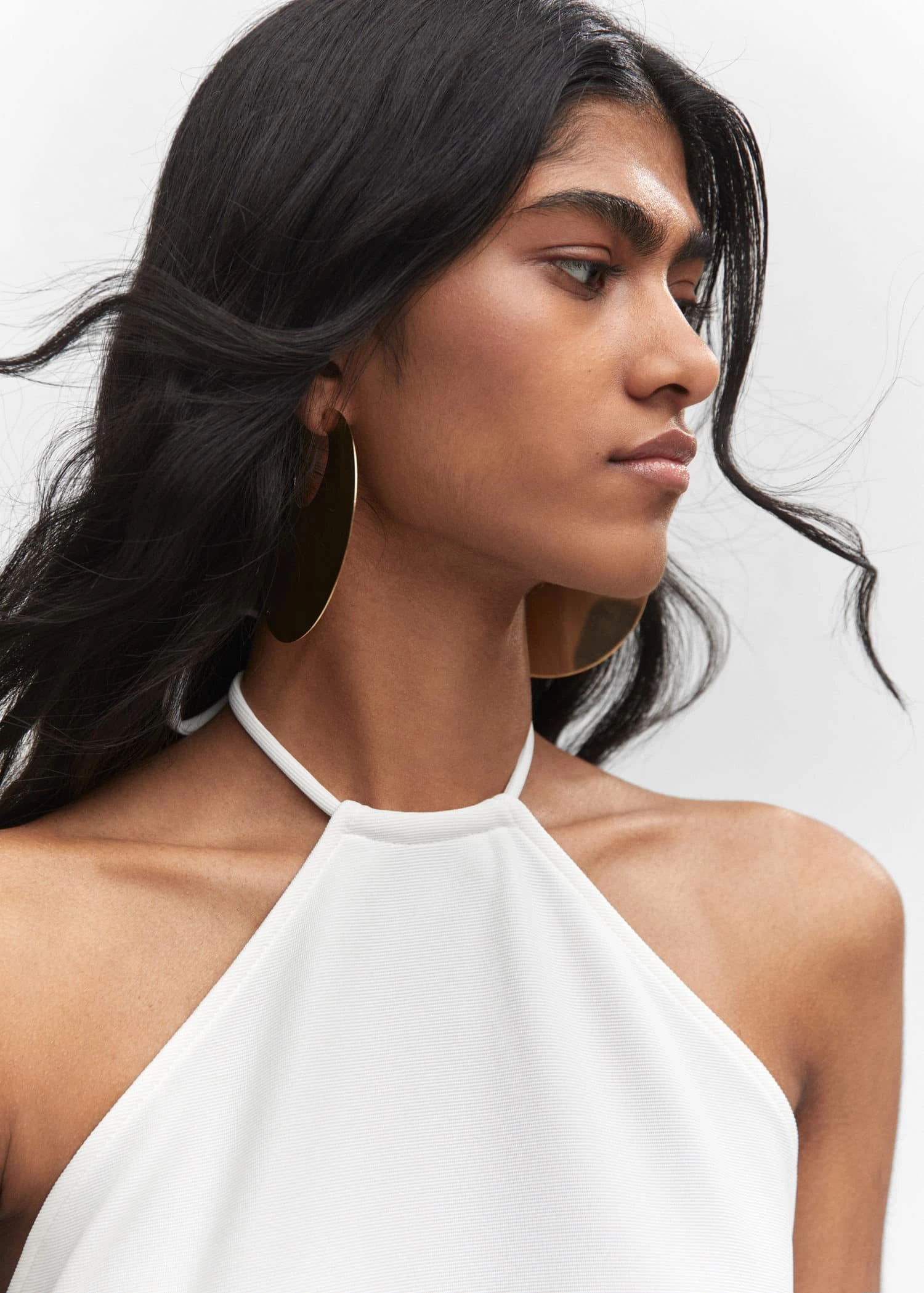 tissu fluide, coupe droite, coupe courte, emmanchures americaines, sans manches, dos nu, detail metallique, lien a nouer autour du cou, saison des festivalsComposition: 98% polyester,2% elasthanne