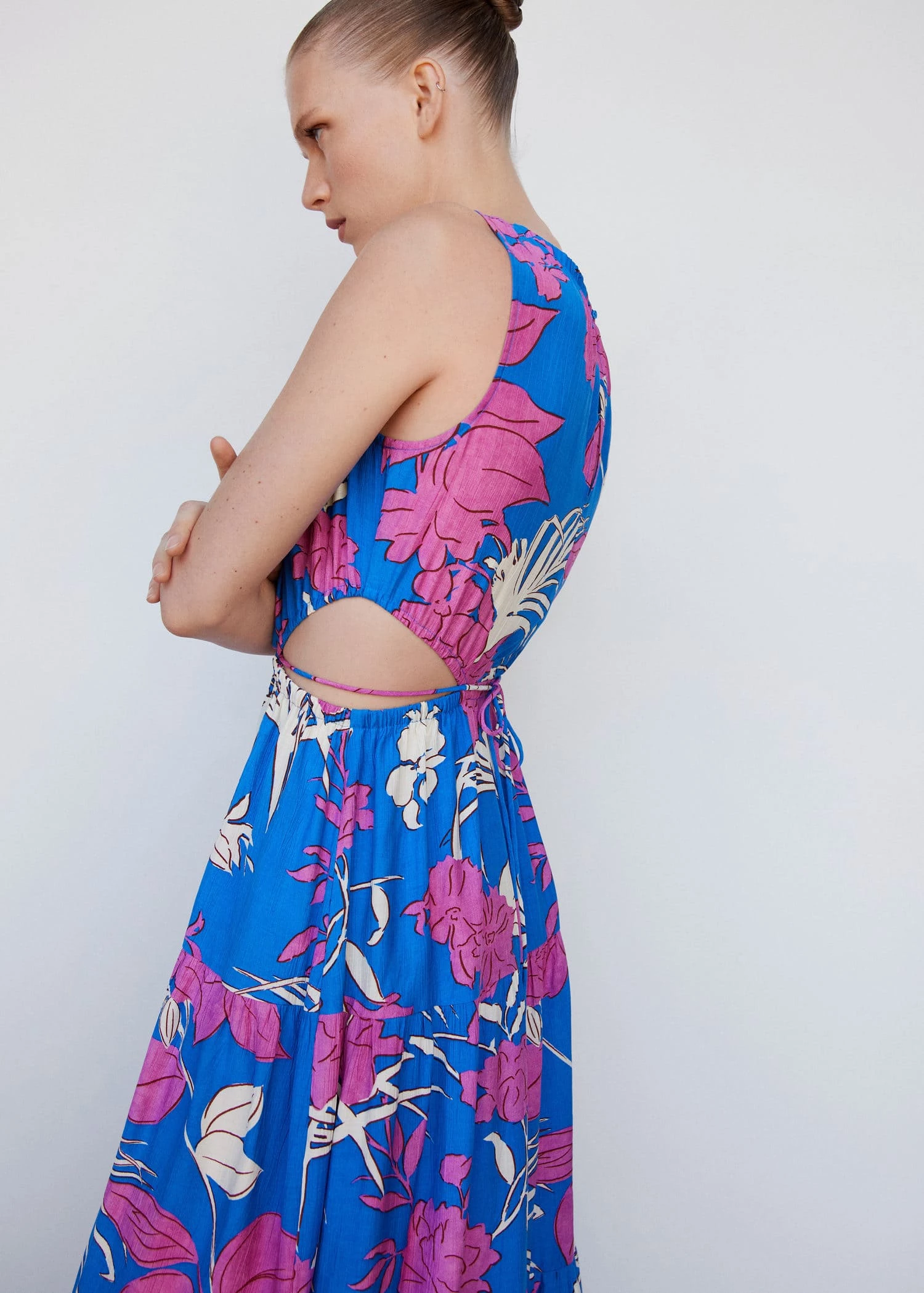 tissu fluide, tissu texture, evase, coupe midi, disponible en uni ou imprime, col rond, sans manches, col boutonne, bas evase, fentes laterales, disponible plusComposition: 85% viscose,15% polyamide