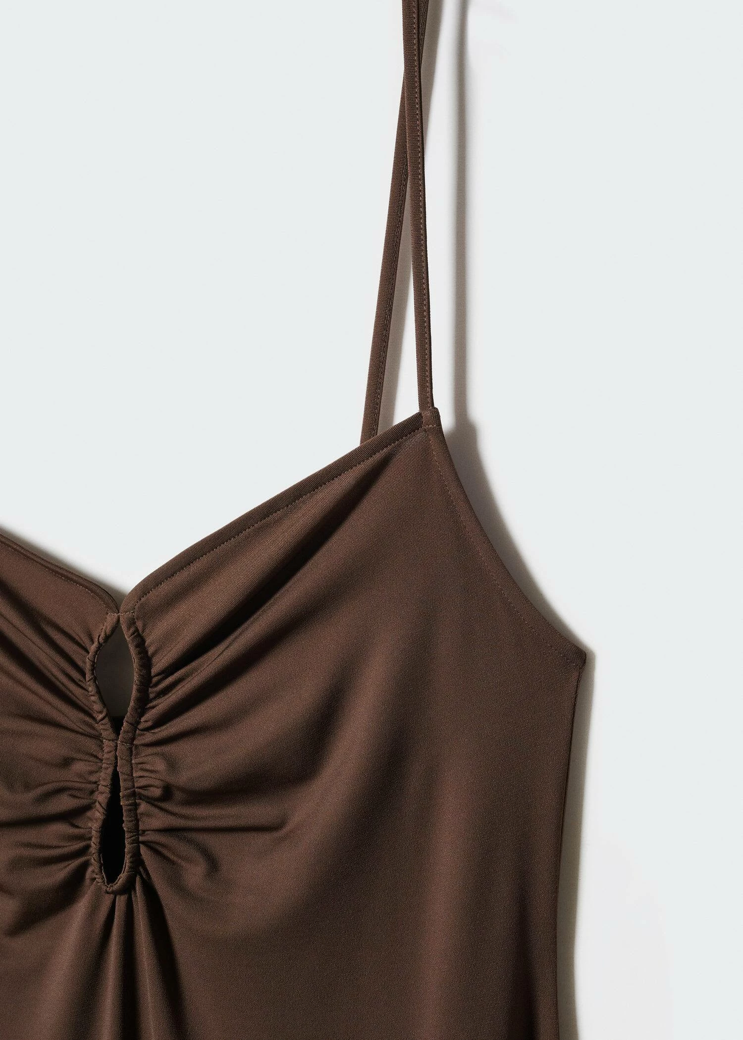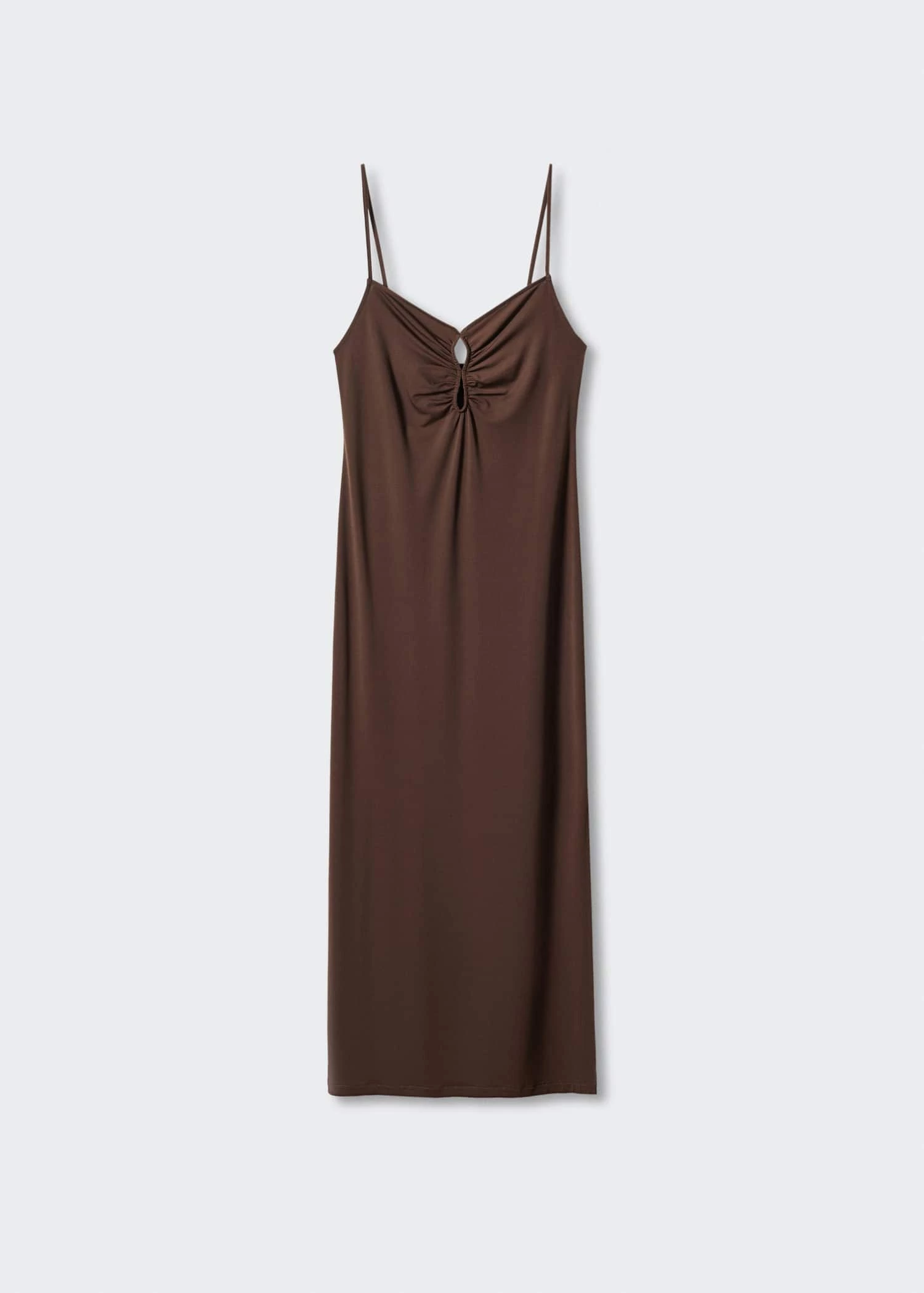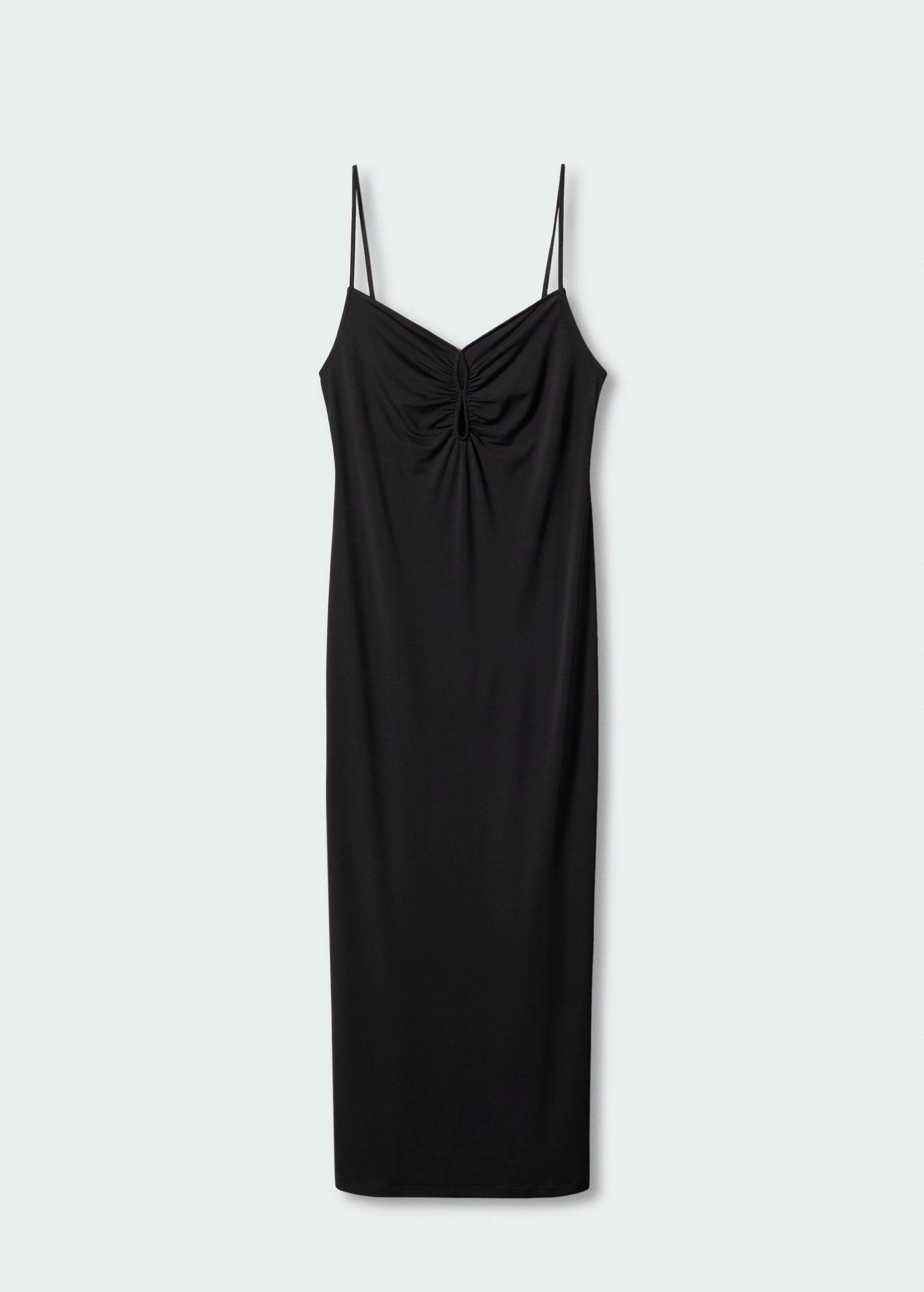 ajuste, coupe longue, col echancre, details fronces, bretelles fines, dos nu, fente laterale, sans fermeture, collection fetes et ceremoniesComposition: 55% polyester,40% polyester recyclé,5% elasthanne