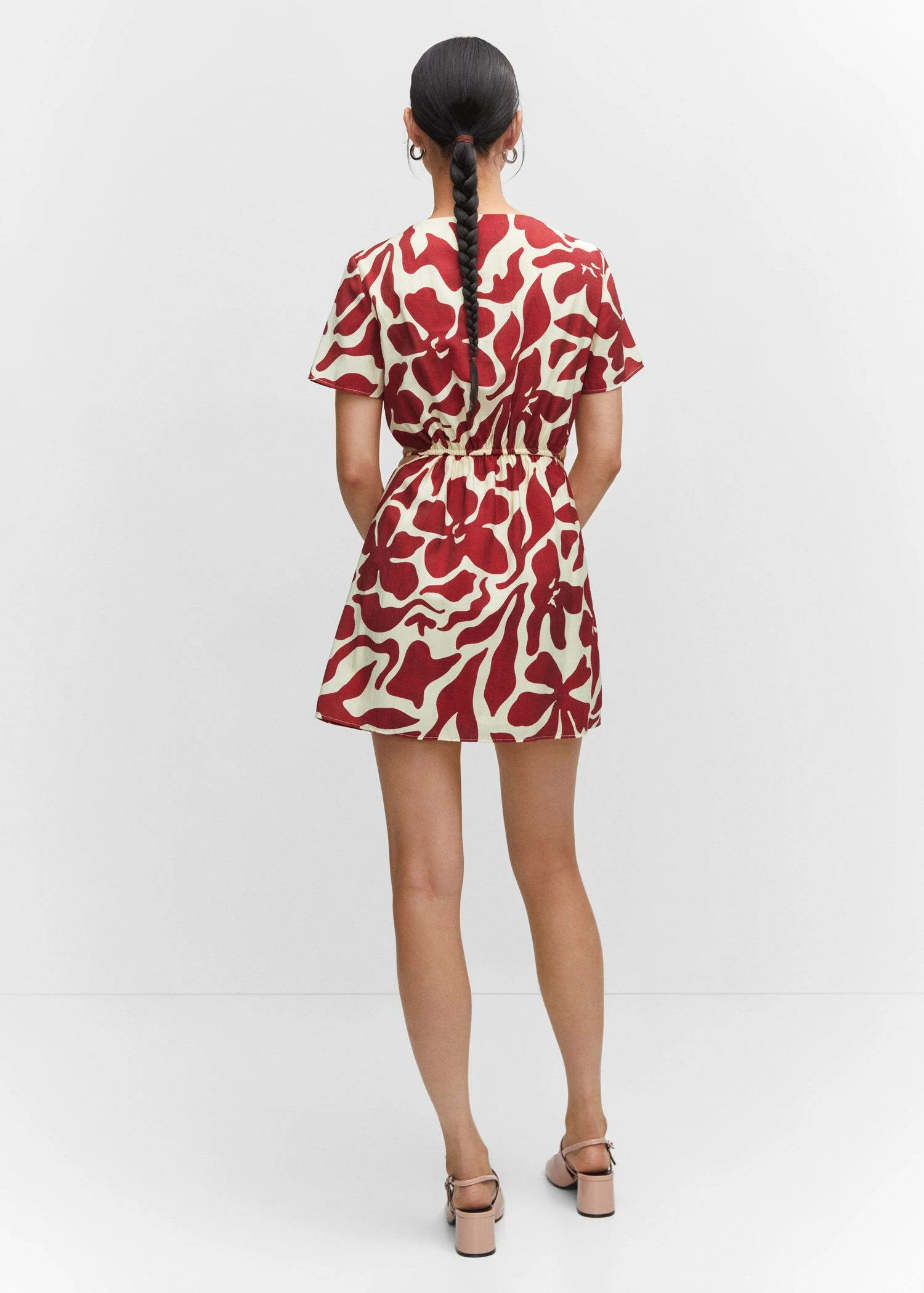 tissu fluide, droit, coupe courte, imprime fleurs, col en v, manches courtes, taille elastique avec fermeture a nœud, fentes laterales, doublureComposition: 86% viscose,11% polyester,3% polyamide. Doublure: 80% polyester,20% coton
