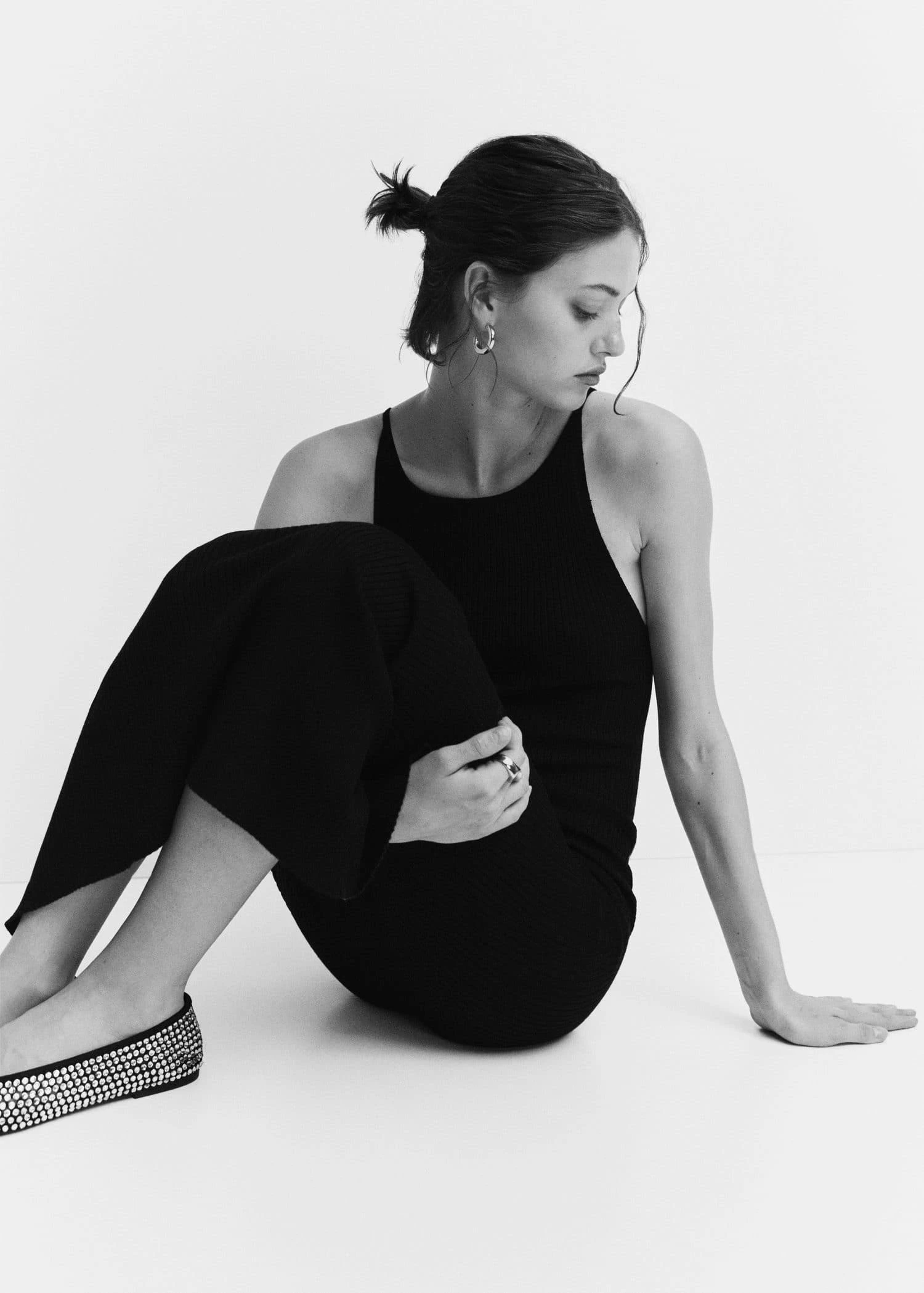 tissu en maille fine, bretelles fines, coupe droite, coupe midi, sans doublure interieure, sans fermeture, col echancreComposition: 70% viscose,30% polyamide