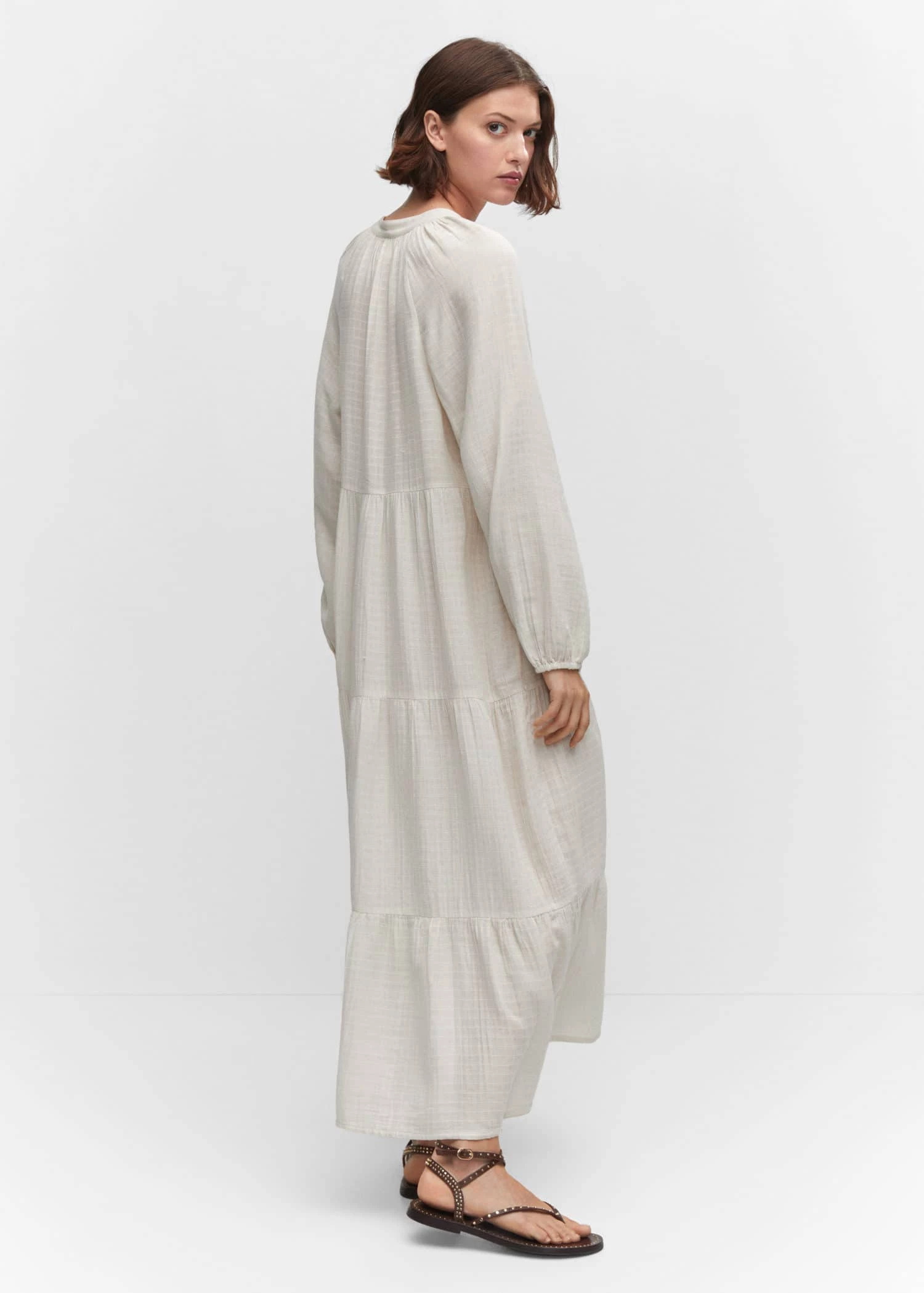 tissu 100 % coton, droit, coupe maxi, col en v, manches longues bouffantes, poignets elastiques, sans fermeture, bas evaseComposition: 100% coton
